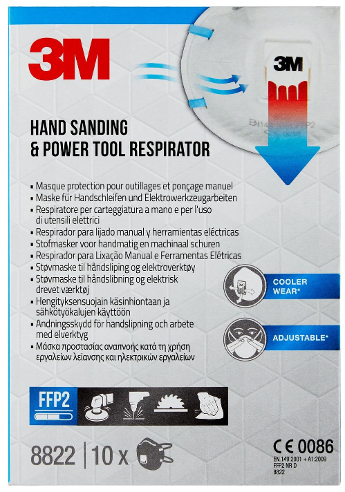 - Klasa ochrony FFP2 zapewniająca ochronę przed drobnymi pyłami, mgłami wodnymi i olejowymi