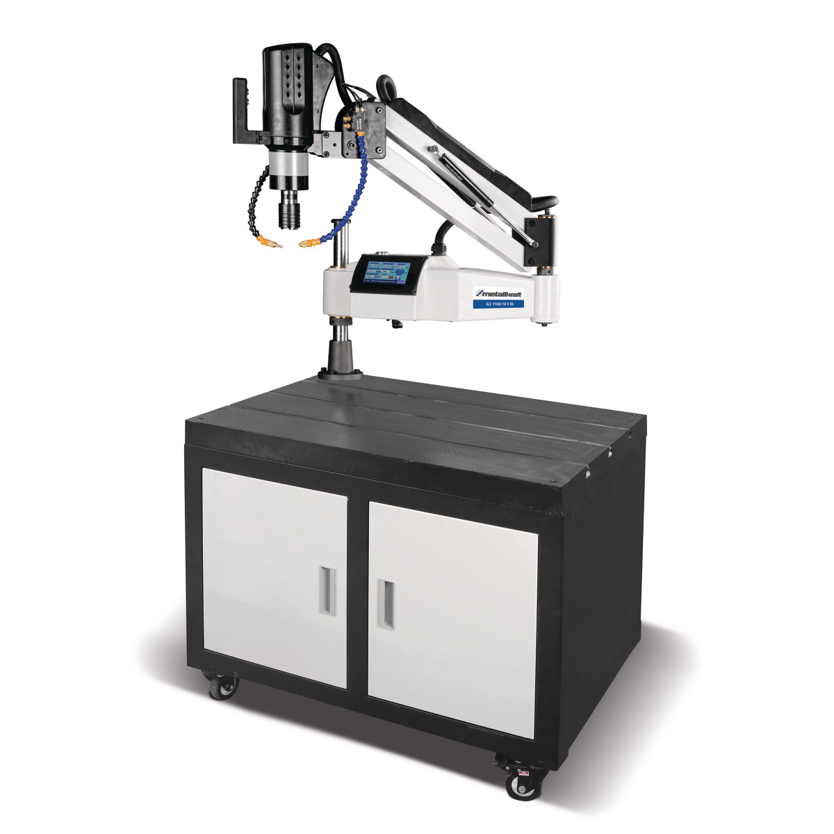 Stół mocujący do maszyn gwintujących Metallkraft 4460005 to solidna i wytrzymała konstrukcja, idealna do zastosowań w przemyśle związanym z obróbką metalu. Produkt charakteryzuje się stabilnym podwoziem, wyposażonym w cztery kółka skrętne, co ułatwia jego przemieszczanie. Stół posiada rowki teowe o szerokości 16 mm, które umożliwiają pewne mocowanie urządzeń. Jest to niezastąpiony element wyposażenia warsztatów zajmujących się pracami gwintującymi, który zapewnia bezpieczne i stabilne mocowanie maszyn.