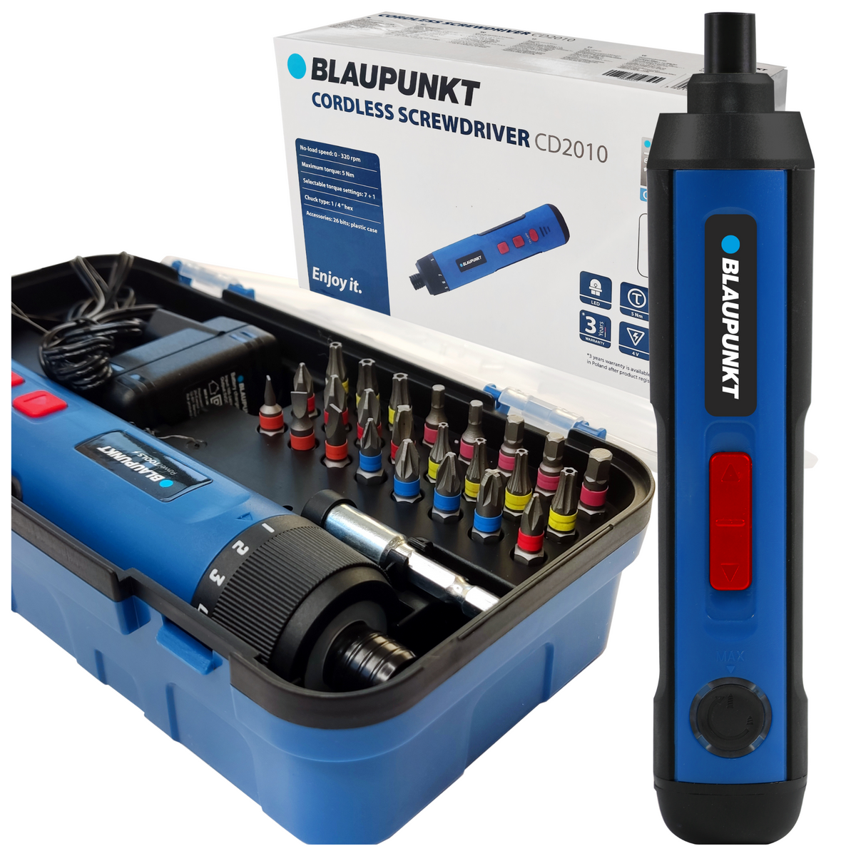 Wkrętak Blaupunkt CD2010 to kompaktowe i wszechstronne narzędzie, które znajdzie swoje zastosowanie zarówno w domowych, jak i profesjonalnych zastosowaniach. Wyposażony w silnik o napięciu 4 V, urządzenie oferuje maksymalny moment obrotowy do 5 Nm oraz prędkość obrotową do 320 obr./min, co umożliwia szybkie i efektywne wykonywanie prac montażowych, takich jak skręcanie i rozkręcanie śrub oraz wiercenie niewielkich otworów. Dzięki regulowanemu sprzęgłu 7+1 użytkownik może precyzyjnie dostosować siłę momentu obrotowego, co minimalizuje ryzyko uszkodzenia wkrętów. Dodatkowo wbudowana lampka LED poprawia widoczność, zapewniając wygodną pracę. Wkrętak jest zasilany litowo-jonowym akumulatorem o pojemności 2000 mAh, który gwarantuje długotrwałą pracę bez przerw. Urządzenie można łatwo naładować za pomocą standardowej ładowarki USB-C, a pełne ładowanie zajmuje zaledwie 60 minut. Ergonomiczny kształt i gumowe elementy obudowy zwiększają komfort i bezpieczeństwo pracy.