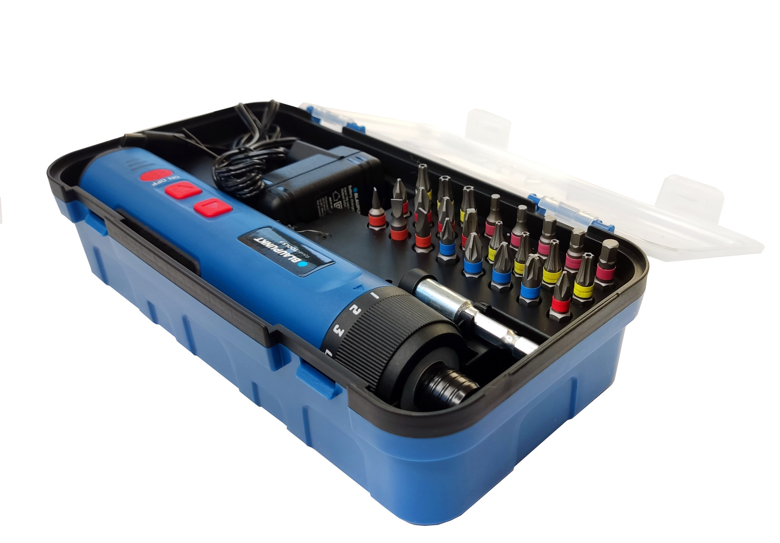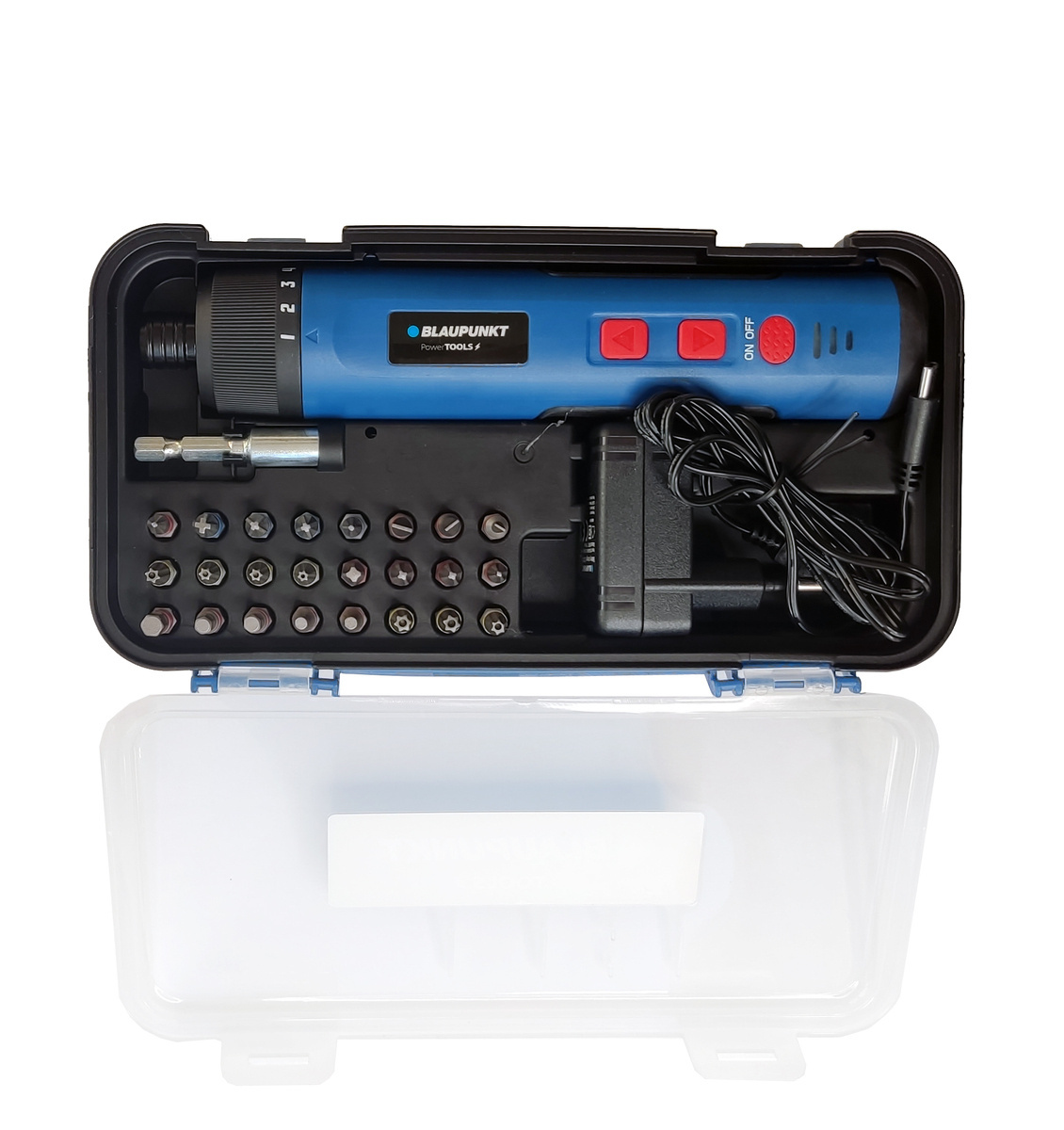 - Silnik o napięciu 4 V oraz prędkość obrotowa wynosząca maksymalnie 320 obr./min umożliwiają szybkie skręcanie i rozkręcanie śrub, oraz wiercenie niewielkich otworów