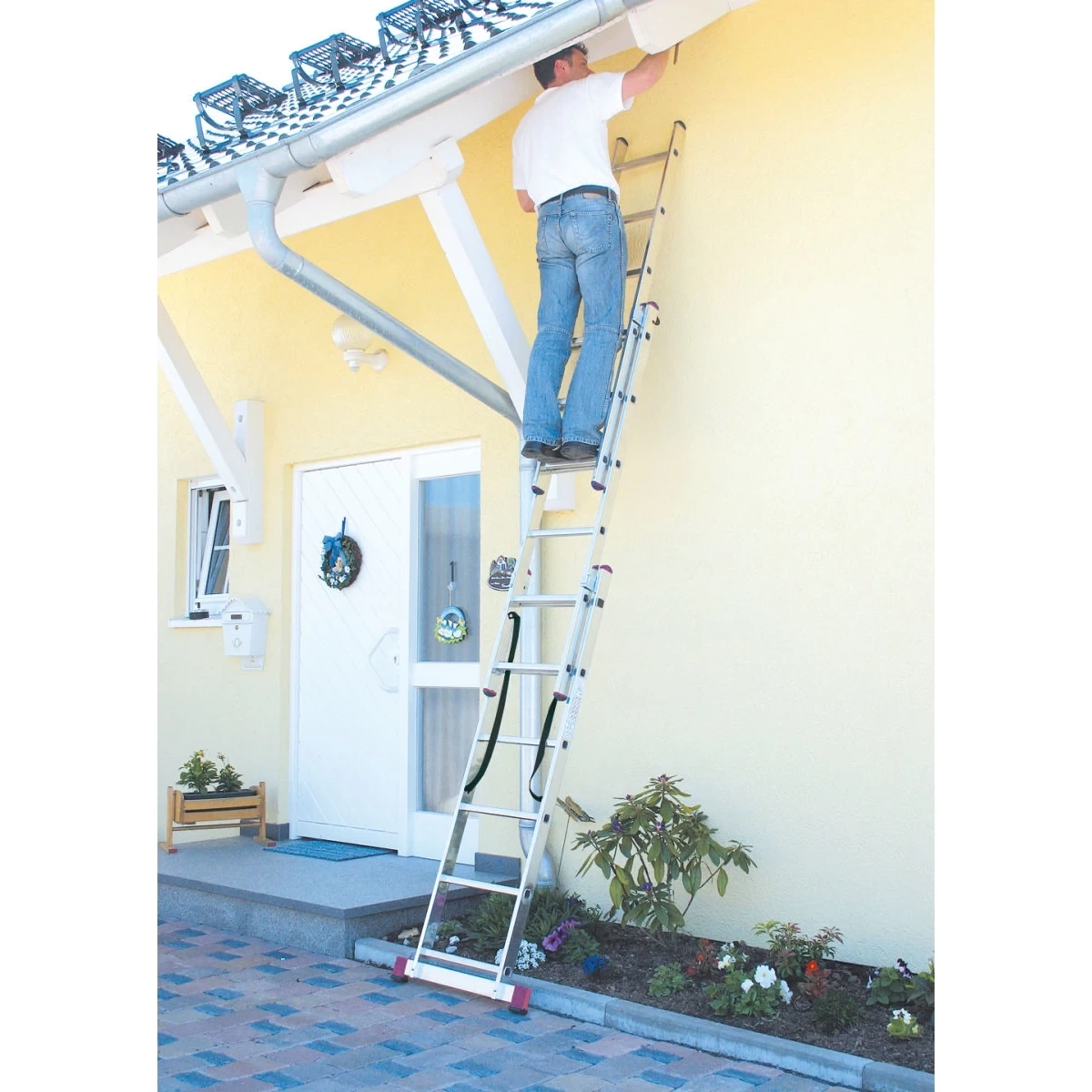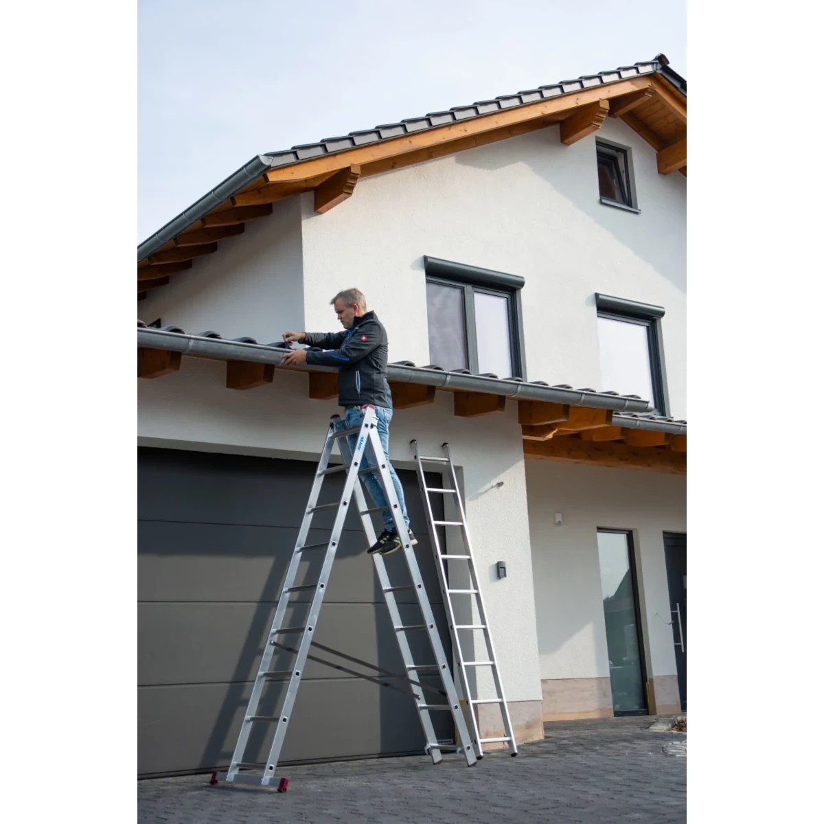 Drabina Krause Corda 030368 to wszechstronna, trzyelementowa drabina, która nada się różnorodnych zastosowań zarówno w domu, jak i w pracy. Może być używana jako drabina rozsuwana, przystawna lub wolnostojąca, co czyni ją bardzo praktycznym akcesorium o uniwersalnym charakterze. Dzięki profilowanym szczeblom oraz stalowym prowadnicom ułatwiającym rozsuwanie, użytkowanie drabiny jest wygodne i bezproblemowe. Skuteczny stabilizator i antypoślizgowe nakładki przekładają się z kolei na pewne podparcie na różnych powierzchniach. Specjalne haki blokujące zapobiegają przypadkowemu złożeniu lub rozłożeniu się drabiny, co znacznie zwiększa bezpieczeństwo podczas transportu oraz użytkowania. Drabina pozwala na maksymalne obciążenie na poziomie 150 kg.