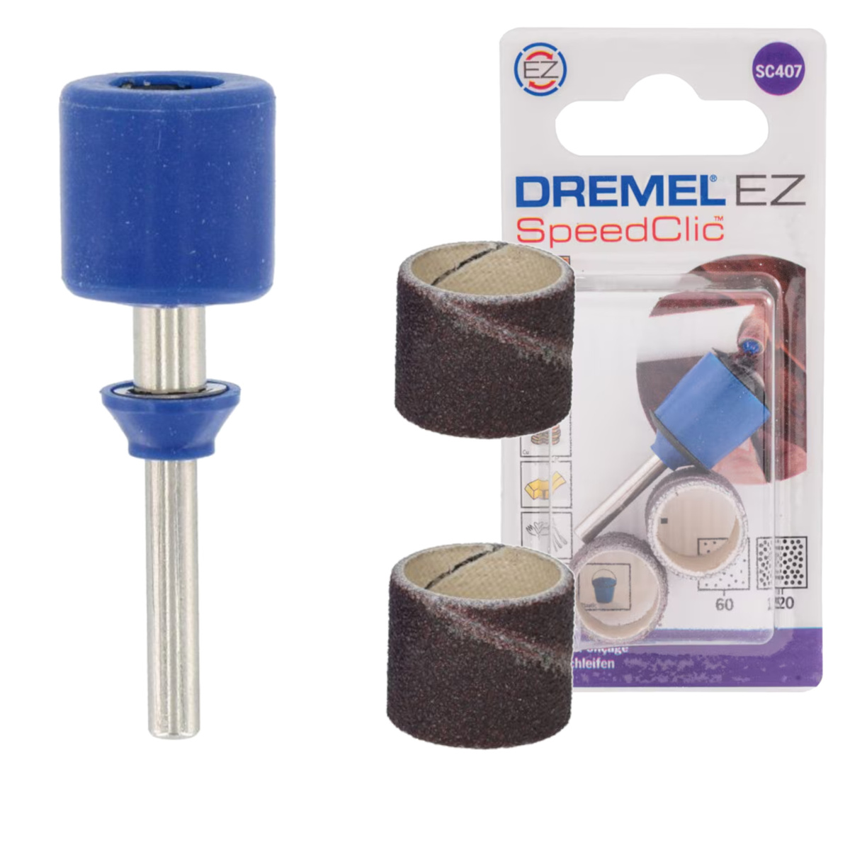Trzpień do szlifowania i taśmy szlifierskie DREMEL EZ SpeedClic 2615S407JA to poręczny trzpień, ułatwiający szybką wymianę taśm szlifierskich 13 mm. Wyjątkowy mechanizm Dremel Easy SpeedClic (SC) umożliwia beznarzędziową, łatwą i szybką wymianę tarcz: wystarczy je ODCIĄGNĄĆ – OBRÓCIĆ – ZWOLNIĆ i gotowe. Dzięki temu wymiana akcesoriów jest 6 razy szybsza niż przy użyciu standardowego trzpienia. Wygląd taśmy sygnalizuje jej ziarnistość. Im większe nierówności można zaobserwować na powierzchni taśmy, tym niższa ziarnistość. Taśmy szlifierskie są dostępne w ziarnistościach 120 i 60. Im niższa ziarnistość, tym więcej materiału usuwa narzędzie.