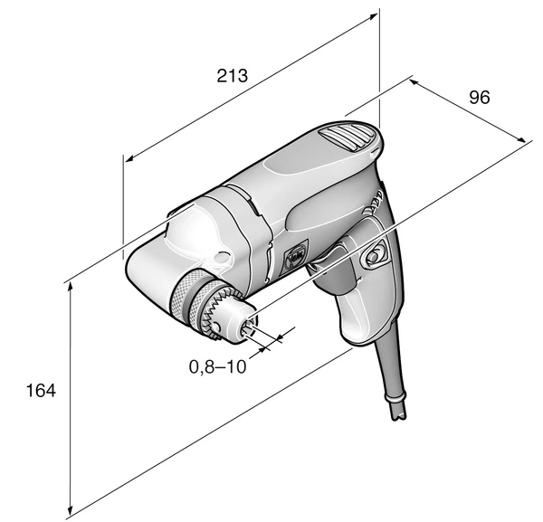 - Zakres mocowania uchwytu wiertarskiego: 0,8 - 10 mm