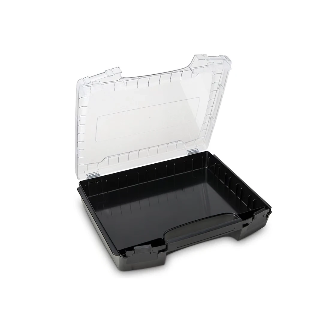Walizka Sortimo L-BOXX 72 BSS 6100000336 to praktyczne rozwiązanie do przechowywania małych elementów, które przyda się zarówno w domu, jak i w profesjonalnych warsztatach. Dzięki transparentnej pokrywie z poliwęglanu użytkownik ma zawsze pełen wgląd w zawartość walizki, co znacznie ułatwia szybkie odnalezienie właściwych przedmiotów. L-BOXX 72 cechuje się niską wagą i posiada wiele opcji wewnętrznego układu, co pozwala na dostosowanie organizera do indywidualnych potrzeb. Dodatkowo, walizka jest kompatybilna z innymi produktami Sortimo, takimi jak L-BOXX Rack czy LS-BOXX, co przekłada się na wysoką funkcjonalność i dużą uniwersalność produktu.
