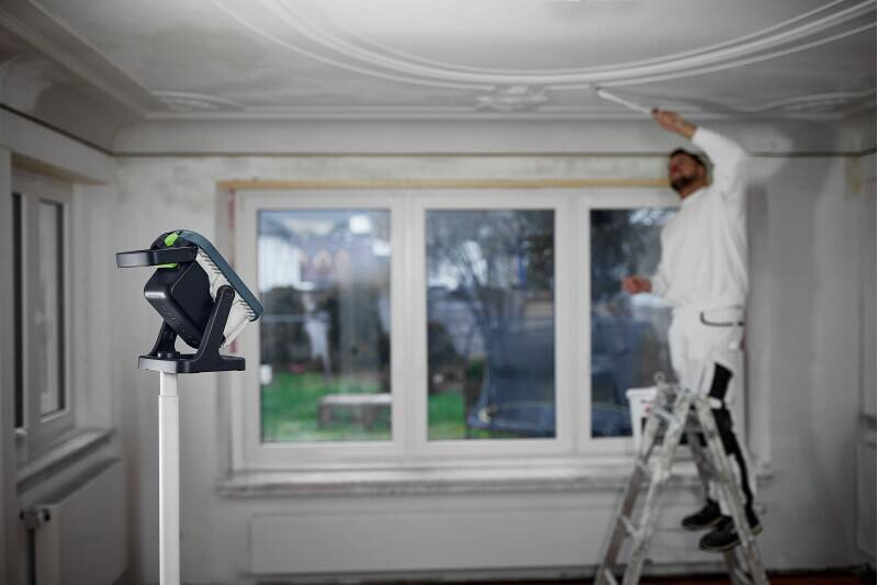 Lampa Festool SYSLITE KBS C jest wyjątkowo wszechstronna. Można ją łatwo ustawić na statywie, powiesić na ścianie lub zamocować magnetycznie na metalowych powierzchniach. Jej odchylana obudowa umożliwia precyzyjne skierowanie światła od podłogi aż po sufit. Wytrzymała konstrukcja lampy, odporna na uderzenia, pył oraz bryzgi wody (klasa ochrony IP 54), sprawia, że doskonale sprawdzi się w trudnych warunkach na placu budowy lub warsztacie.