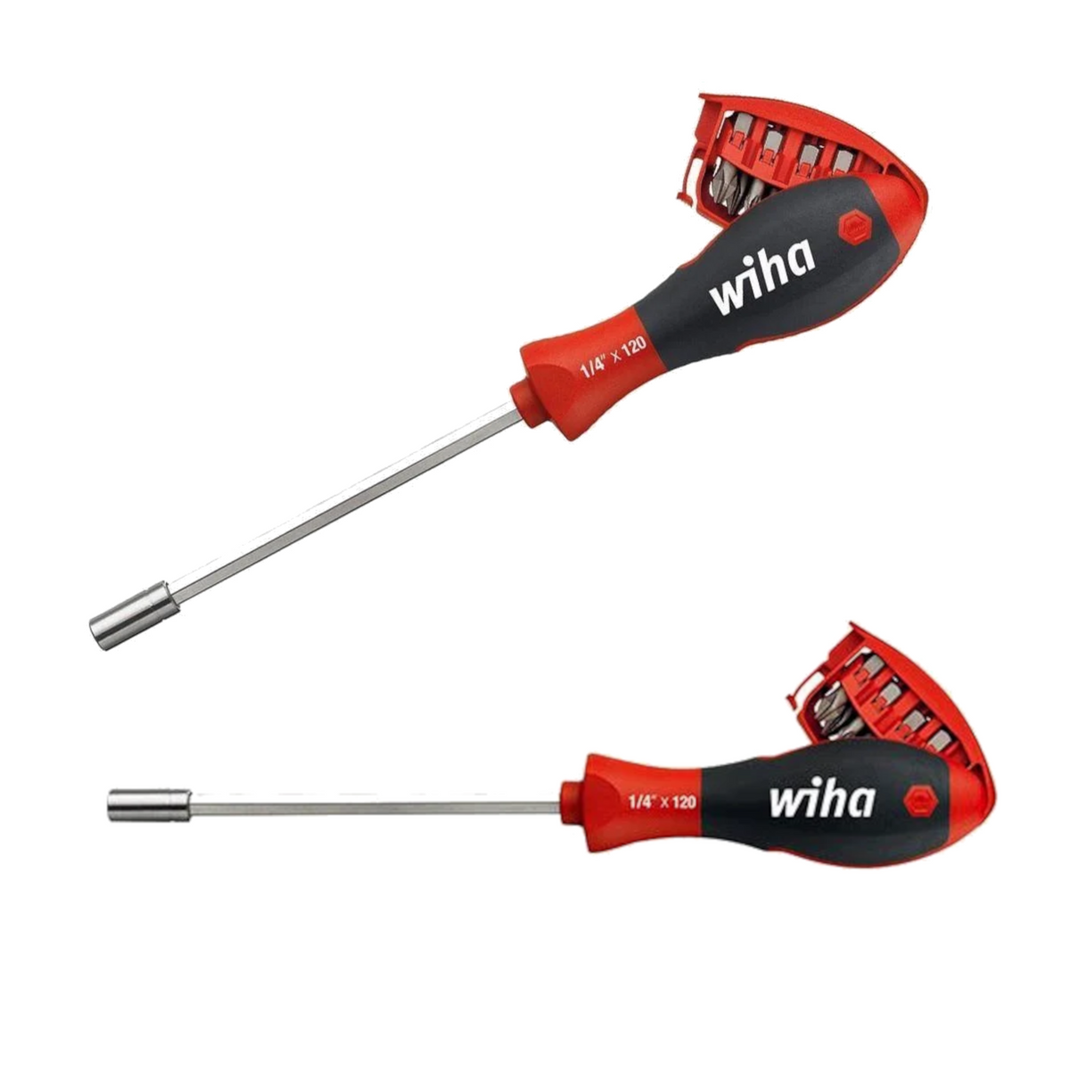 Magnetyczny wkrętak z magazynkiem Wiha 32901 to wszechstronne narzędzie, które łączy w sobie ergonomię, trwałość oraz funkcjonalność. Idealnie nadaje się jako alternatywa dla zestawu wkrętaków, oferując osiem różnych końcówek w jednym urządzeniu. Wbudowany magazynek na bity pozwala na wygodne przechowywanie i szybki dostęp do odpowiednich końcówek, a stalowy uchwyt na bity z silnym magnesem gwarantuje pewne trzymanie narzędzi podczas pracy.