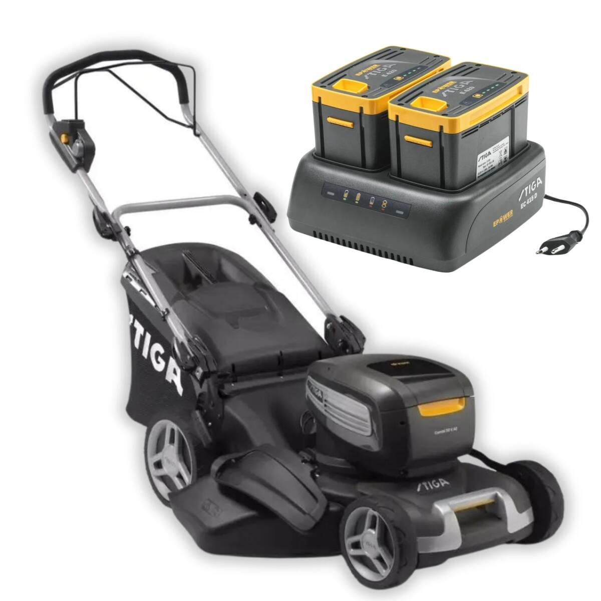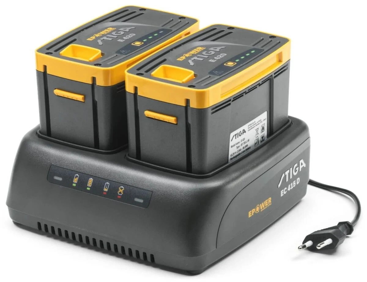 - 2x akumulator STIGA ePower E 475 (7,5Ah) i podwójna ładowarka w zestawie