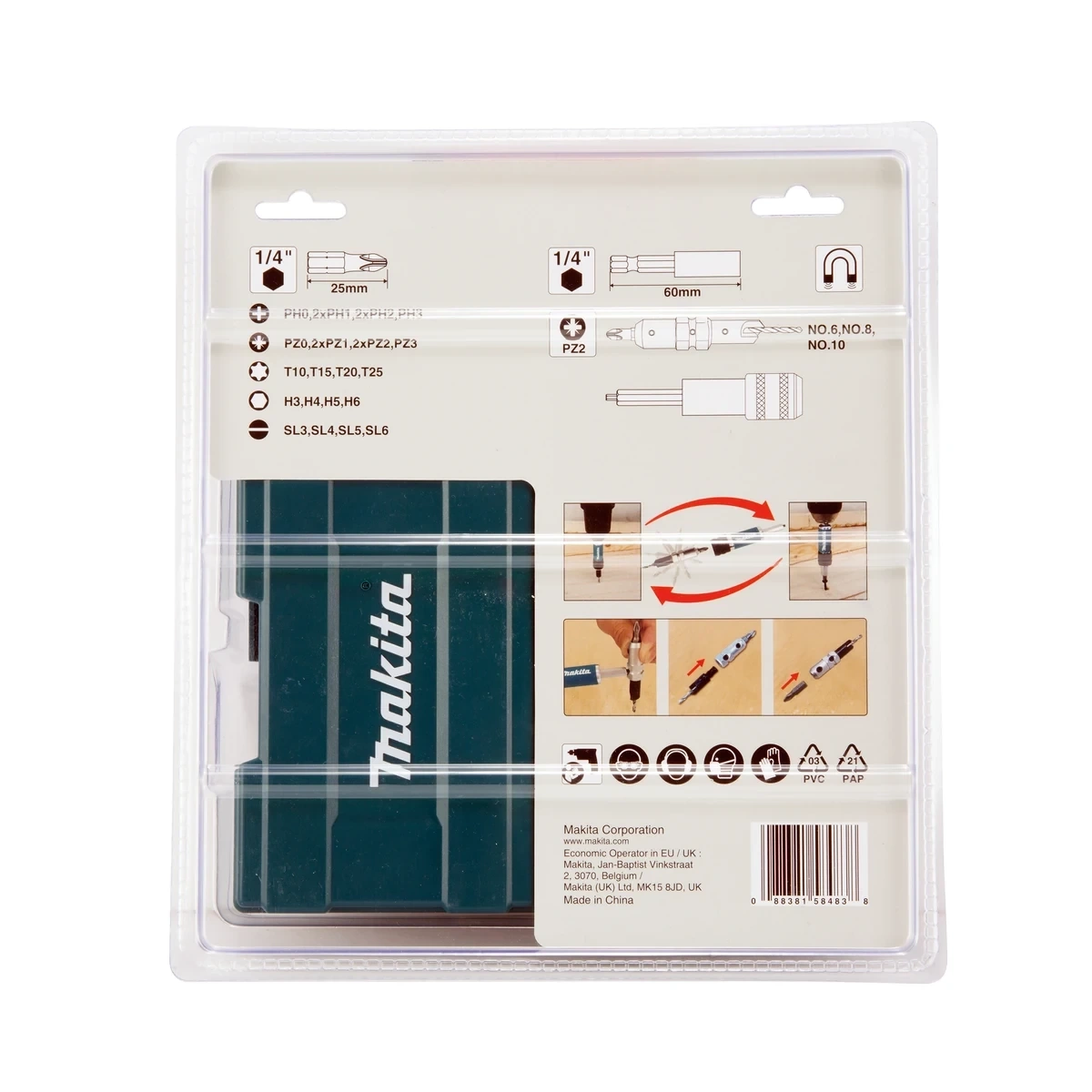 Zestaw bitów Makita D-73477 to praktyczny komplet końcówek, który idealnie sprawdzi się w profesjonalnych zastosowaniach. Zestaw zawiera 24 bity, wiertła z pogłębiaczem, adapter oraz magnetyczny uchwyt i umożliwia wszechstronne zastosowanie w różnych pracach montażowych i instalacyjnych. Wszystkie elementy zestawu zostały starannie zaprojektowane, by zapewnić dobre dopasowanie do łbów wkrętów i długą żywotność końcówek. Poręczna kaseta z tworzywa sztucznego ułatwia z kolei organizację i przechowywanie bitów. Produkt ten będzie doskonałym wyborem zarówno dla profesjonalistów, jak i majsterkowiczów, którzy cenią sobie jakość i precyzję narzędzi marki Makita.
