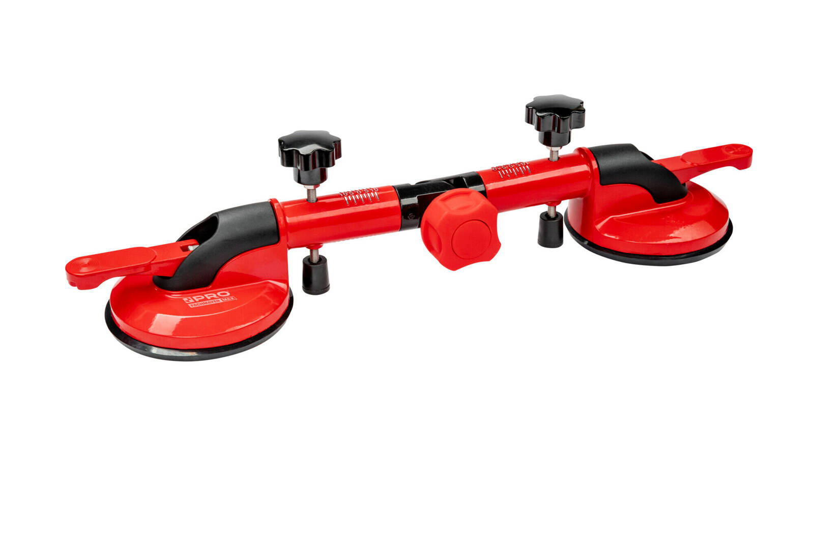 Kątowy uchwyt do szyb i płytek PRO-PR006 to profesjonalne narzędzie przeznaczone do montażu i przenoszenia elementów o płaskiej i gładkiej powierzchni, takich jak szyby, płytki, arkusze blach i laminaty. Dzięki dzielonemu uchwytowi z możliwością ustawienia kąta w zakresie 90°-270°, narzędzie to idealnie sprawdza się podczas instalacji materiałów wymagających precyzyjnej regulacji. Uchwyt pozwala także na korektę wzajemnego położenia materiałów w zakresie do 10 mm. Jego solidna konstrukcja opiera się na lekkim, ale wytrzymałym korpusie wykonanym z aluminium. Wyposażony w dwie gumy nitrylowe o średnicy 118 mm, uchwyt zapewnia pewne trzymanie i stabilność materiału. Dźwignie umożliwiają szybkie mocowanie oraz zwalnianie, co ułatwia pracę i zwiększa efektywność. Uchwyt ma długość 42 cm i maksymalny udźwig wynoszący 100 kg w pionie oraz 50 kg w poziomie, co czyni go idealnym wyborem zarówno dla profesjonalistów, jak i majsterkowiczów.