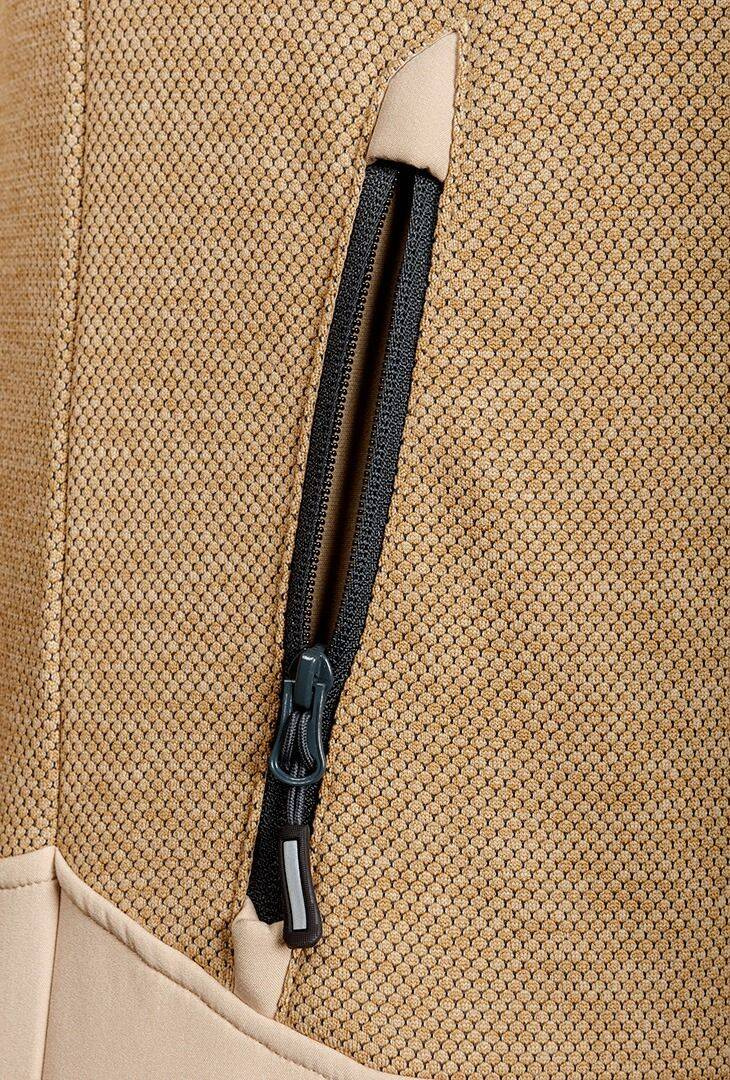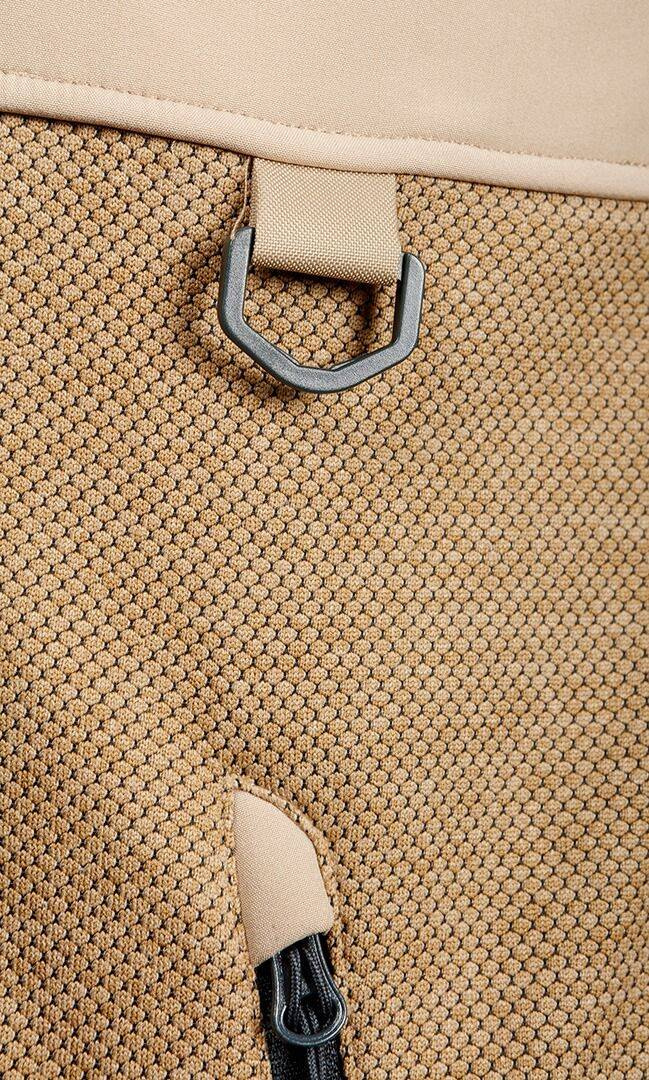 - Wstawki z dzianiny softshell na rąbkach, stójce, rękawach, kieszeni oraz dole bluzy