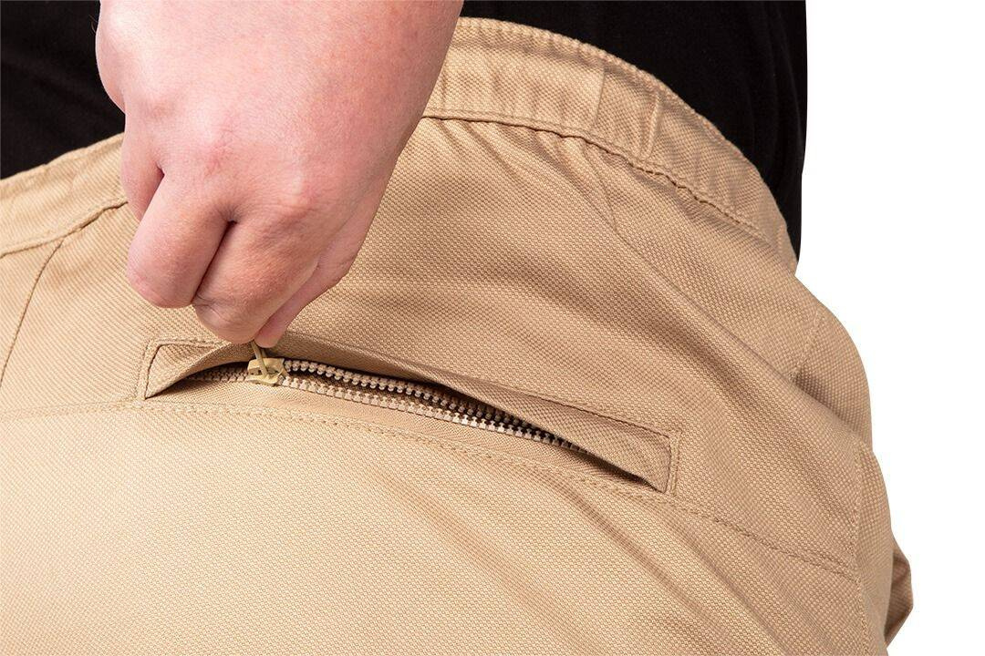 • Dodatkowe kieszenie na udach zapinane na zamek