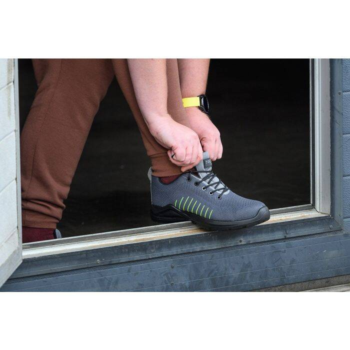 Cholewka półbutów wykonana jest z dzianiny typu flyknit, co gwarantuje lekkość i doskonałe dopasowanie do stopy. Wyściółka z siatkowej dzianiny zapewnia oddychalność, co zwiększa komfort noszenia nawet przy długotrwałym użytkowaniu. Podeszwa PU/PU z systemem absorpcji wstrząsów chroni stopy przed obciążeniami, a wkładka piankowa EVA dodatkowo podnosi wygodę. Obuwie spełnia normę EN ISO 20345, co jest potwierdzeniem zgodności z europejskimi standardami bezpieczeństwa.