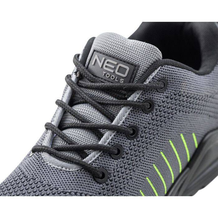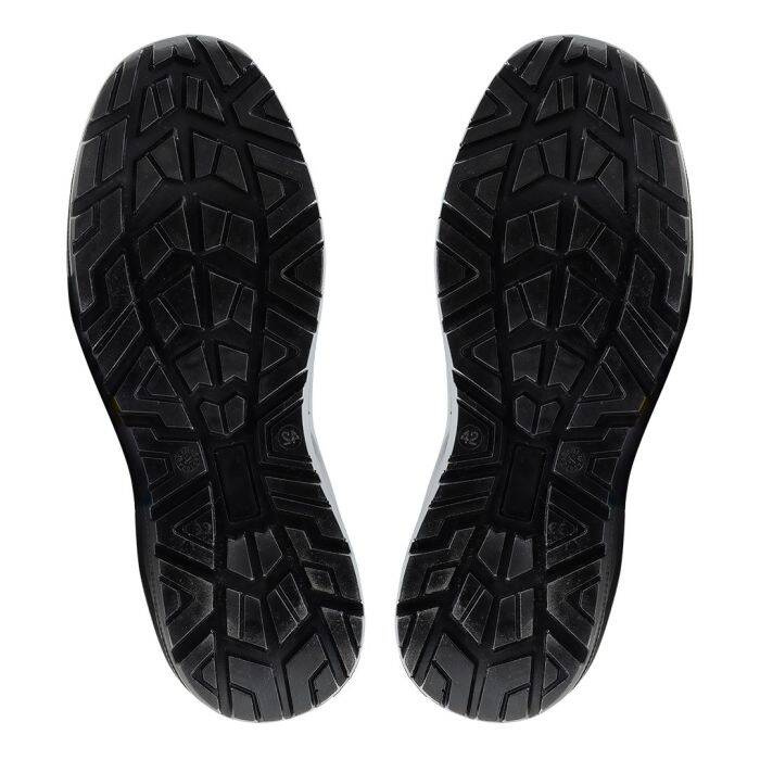 Cholewka półbutów wykonana jest z dzianiny typu flyknit, co gwarantuje lekkość i doskonałe dopasowanie do stopy. Wyściółka z siatkowej dzianiny zapewnia oddychalność, co zwiększa komfort noszenia nawet przy długotrwałym użytkowaniu. Podeszwa PU/PU z systemem absorpcji wstrząsów chroni stopy przed obciążeniami, a wkładka piankowa EVA dodatkowo podnosi wygodę. Obuwie spełnia normę EN ISO 20345, co jest potwierdzeniem zgodności z europejskimi standardami bezpieczeństwa.