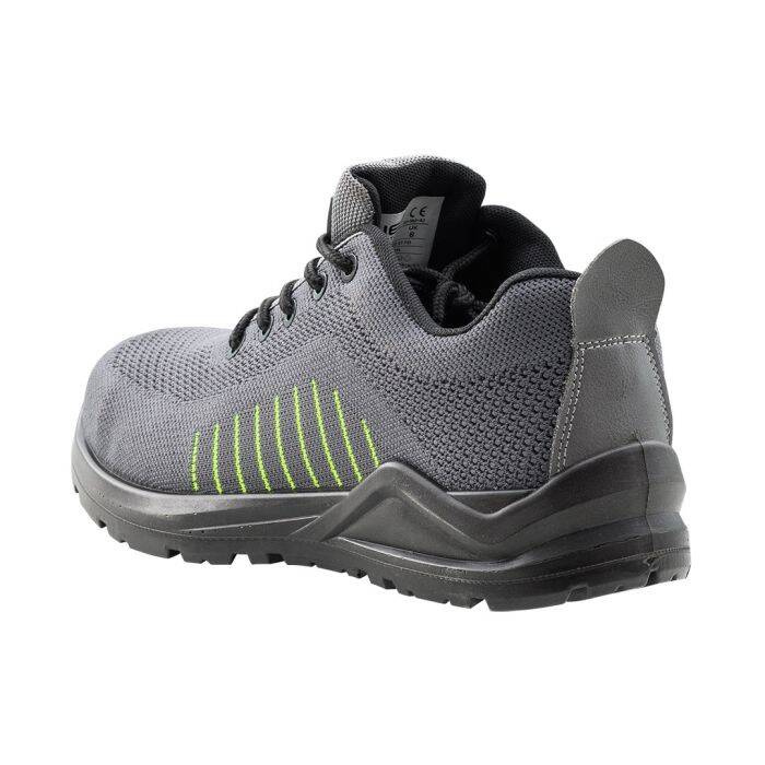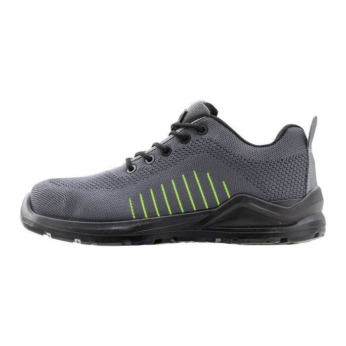 Cholewka półbutów wykonana jest z dzianiny typu flyknit, co gwarantuje lekkość i doskonałe dopasowanie do stopy. Wyściółka z siatkowej dzianiny zapewnia oddychalność, co zwiększa komfort noszenia nawet przy długotrwałym użytkowaniu. Podeszwa PU/PU z systemem absorpcji wstrząsów chroni stopy przed obciążeniami, a wkładka piankowa EVA dodatkowo podnosi wygodę. Obuwie spełnia normę EN ISO 20345, co jest potwierdzeniem zgodności z europejskimi standardami bezpieczeństwa.