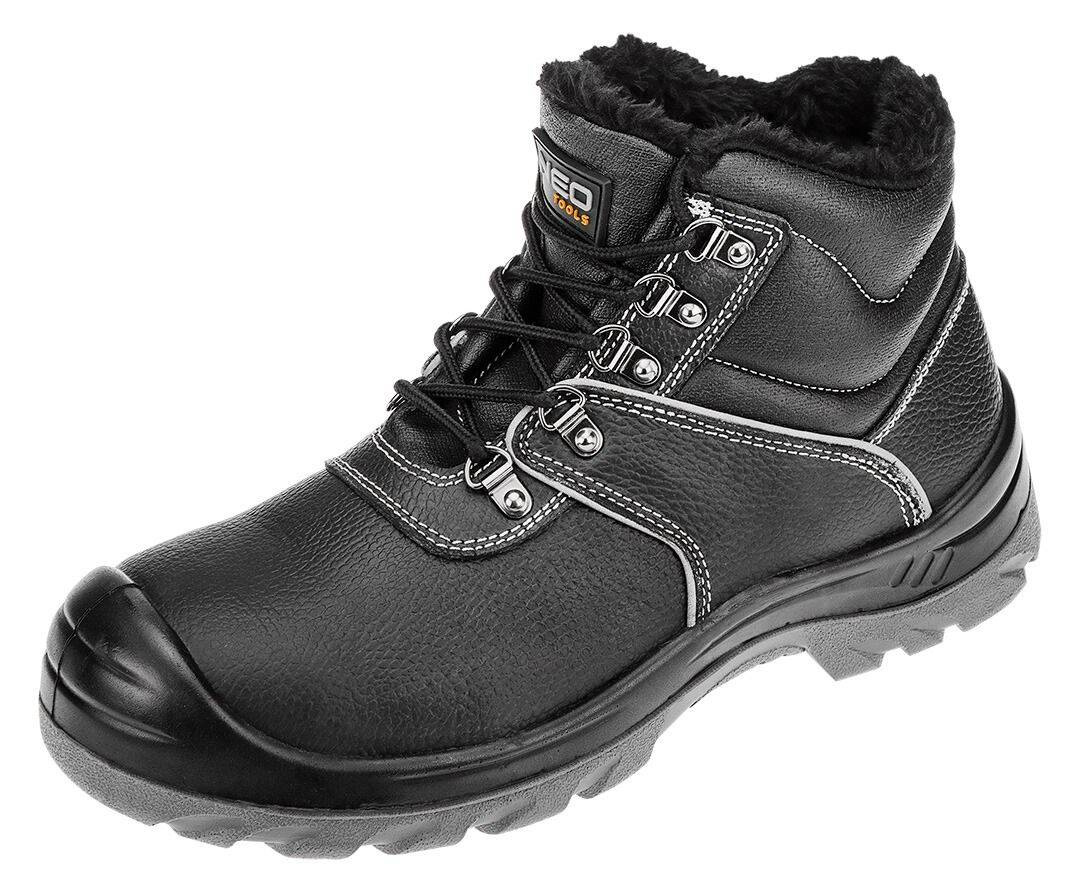 Trzewiki robocze ocieplane S3 SRC, stalowy podnosek, stalowa wkładka antyprzebiciowa, NEO Tools 82-168-39 to solidne obuwie ochronne klasy S3 SRC, zaprojektowane z myślą o pracy w wymagających warunkach, szczególnie w chłodniejsze dni. Wykonane z wytrzymałej, skórzanej cholewki z wytłaczanej dwoiny i wyposażone w metalowe szlufki, zapewniają trwałość i odporność na uszkodzenia mechaniczne. Buty te posiadają stalowy podnosek, który chroni stopy przed uderzeniami o energii do 200 J, oraz stalową wkładkę antyprzebiciową, zabezpieczającą przed ostrymi przedmiotami. Podeszwa dwumateriałowa jest odporna na oleje, benzynę oraz inne rozpuszczalniki organiczne, a także posiada właściwości antypoślizgowe i antyelektrostatyczne.