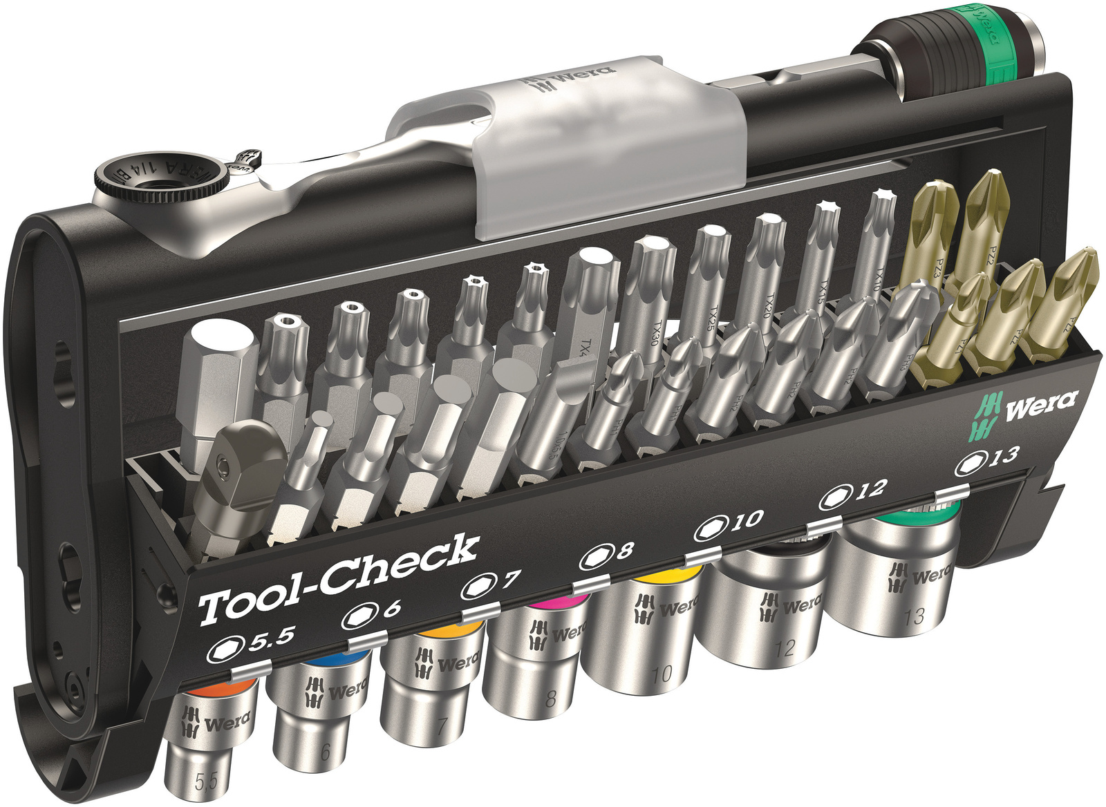 Zestaw kluczy z nasadkami i bitami Wera 05073220001 to kompaktowy i wszechstronny komplet 38 elementów zawierający mini grzechotkę, adapter, uchwyt Rapidaptor, bity oraz nasadki Zyklop 1/4". Zaprojektowany z myślą o mobilności i pracy w trudno dostępnych miejscach, zestaw sprawdzi się zarówno w zastosowaniach profesjonalnych, jak i domowych. Mini grzechotka Zyklop Mini 1 z drobnozębnym mechanizmem (60 zębów, kąt pracy 6°) umożliwia precyzyjne i szybkie dokręcanie nawet przy ograniczonej przestrzeni roboczej. Bity wykonane są w technologii ciągliwo-twardej, co zapewnia optymalną wytrzymałość i żywotność, a dzięki adapterowi możliwe jest również użycie nasadek 1/4". System „Take it easy” z oznaczeniem kolorystycznym ułatwia szybkie odnajdywanie właściwego rozmiaru. Całość mieści się w poręcznym uchwycie Bit-Check, który może również służyć jako dźwignia.