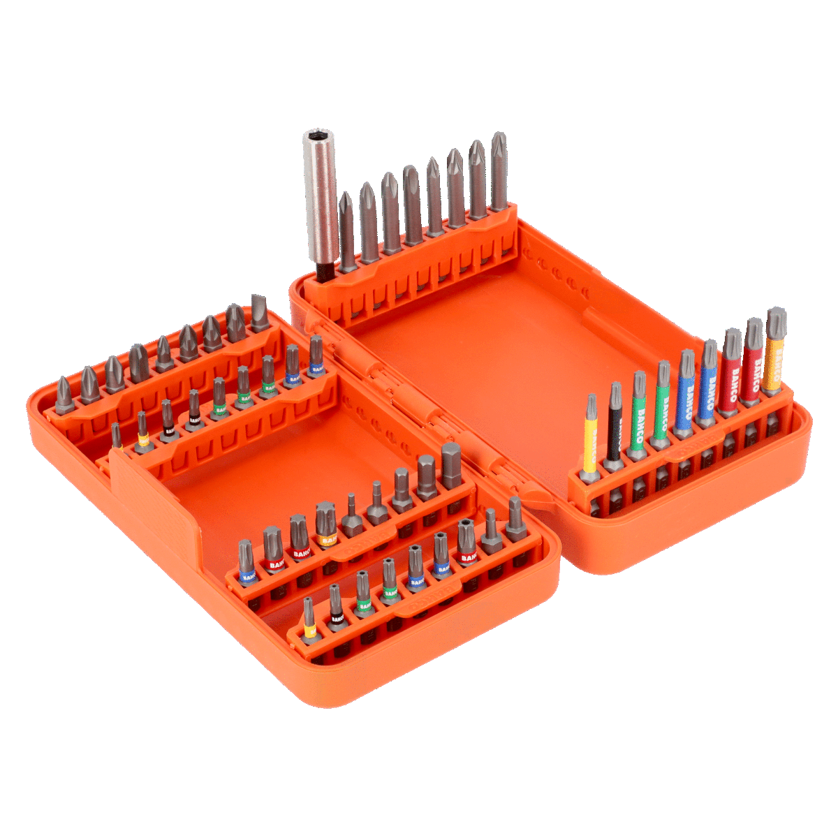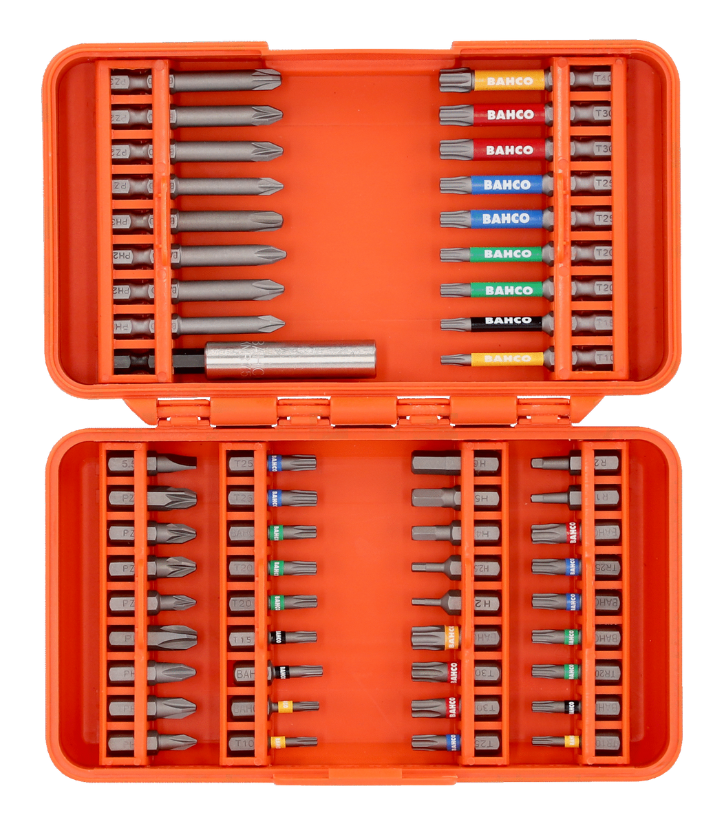 Zestaw bitów Bahco 59S/54C-1 54 el. to kompletny zestaw 54 elementów, przeznaczony do różnorodnych zastosowań w pracach montażowych i serwisowych. W jego skład wchodzi szeroki wybór końcówek wkrętakowych o długości 25 mm i 50 mm, przeznaczonych do obsługi różnych typów śrub, takich jak Phillips, Pozidriv, TORX®, TORX® Tamper, imbusowe, płaskie i Robertson. Zestaw jest także wyposażony w uniwersalny uchwyt magnetyczny oraz praktyczne etui, które ułatwia organizację i przechowywanie końcówek.