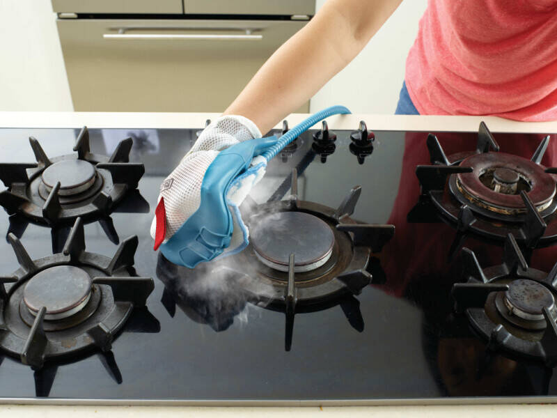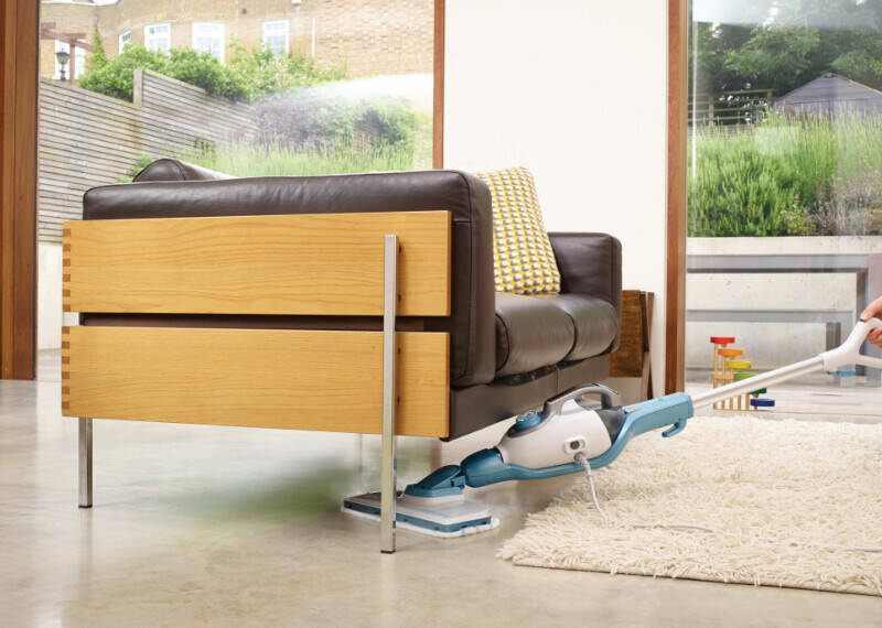 - Mop parowy Deluxe z ręcznym oczyszczaczem parowym Steambuster. Oczyszczacz można łatwo odłączyć i z powrotem podłączyć.