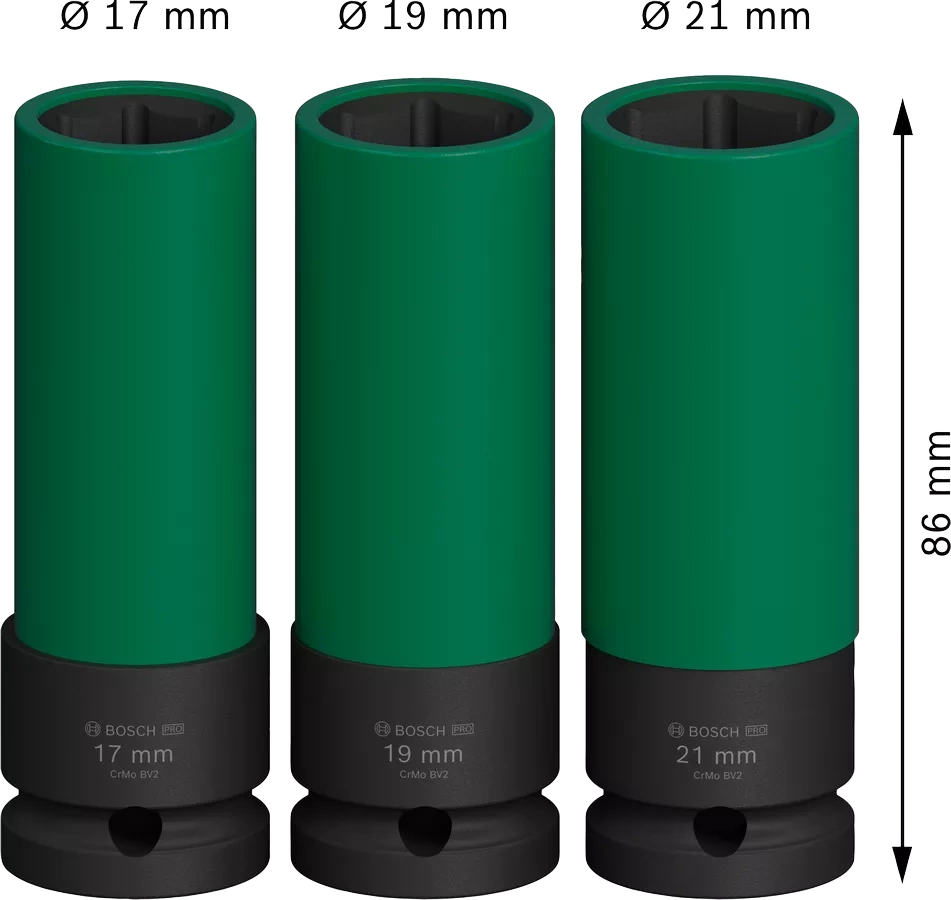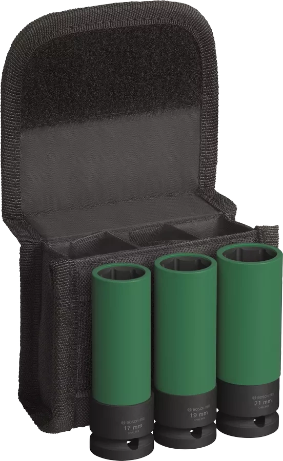 - Szerokość klucza (rozmiary nasadek): 17 mm, 19 mm, 21 mm