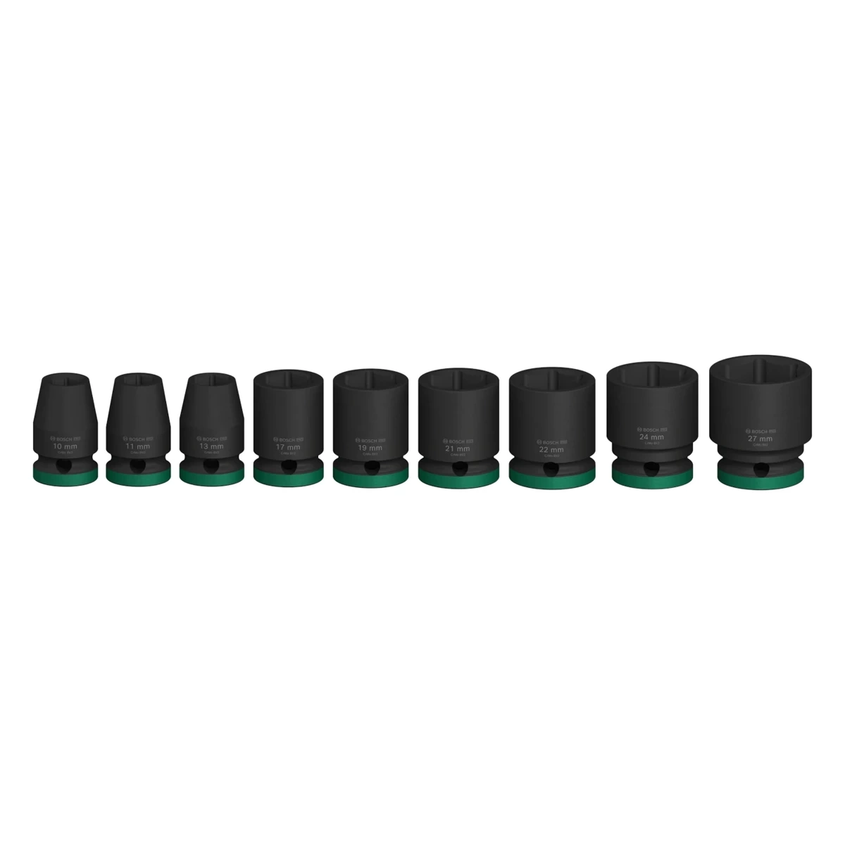 Zestaw nasadek 1/2" Bosch 2608003038 to niezawodny komplet osprzętu przeznaczony do wkręcania śrub, nakrętek i innych elementów, który świetnie sprawdzi się w warsztatach czy na placach budowy. Wykonany z wytrzymałej stali chromowo-molibdenowej (CrMo), zapewnia wysoką odporność na duże obciążenia i momenty obrotowe, dzięki czemu doskonale nada się do użytku z kluczami udarowymi. Nasadki zostały zaprojektowane z myślą o profesjonalistach, którzy cenią sobie precyzję, wygodę i wytrzymałość. Czarna powłoka fosforanowa skutecznie chroni nasadki przed korozją, zapewniając długą żywotność produktu nawet w najcięższych warunkach pracy. Dzięki laserowym oznaczeniom i kolorowemu kodowaniu wybór odpowiedniej końcówki staje się szybki i intuicyjny. Każda nasadka jest wyposażona w rowek i otwór przelotowy, umożliwiający solidne zamocowanie na kluczu udarowym przy użyciu trzpienia z pierścieniem, co gwarantuje stabilność i pewne osadzenie.