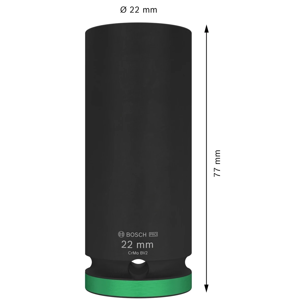 Nasadka 1/2" 22 mm Bosch 2608003053 to zaawansowany osprzęt zaprojektowany do kluczy udarowych z uchwytem czworokątnym. Produkt wykonano z trwałej stali chromowo-molibdenowej i pokryto ochronną powłoką fosforanową, skutecznie zabezpieczającą przed korozją. Nasadka charakteryzuje się wyjątkową odpornością mechaniczną, dzięki czemu nie ulega pęknięciom ani deformacjom nawet podczas pracy z wysokim momentem obrotowym, co czyni ją idealną do wymagających zadań. Czytelne, laserowe oznaczenie rozmiaru ułatwia identyfikację, a rowek z otworem przelotowym zapewnia stabilne mocowanie na kluczu przy użyciu trzpienia z pierścieniem.