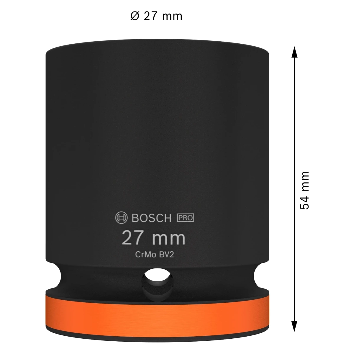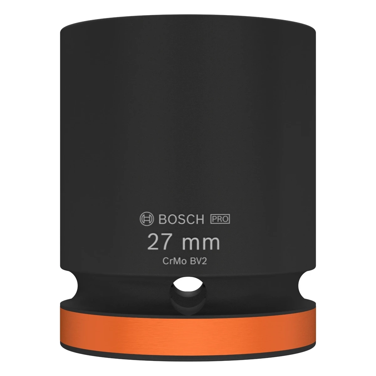 Nasadka 3/4" 27 mm Bosch 2608003061 to profesjonalne narzędzie zaprojektowane do pracy z kluczami udarowymi wyposażonymi w czworokątny uchwyt 3/4". Dzięki zastosowaniu stali chromowo-molibdenowej charakteryzuje się niezwykłą trwałością i odpornością na uszkodzenia mechaniczne, takie jak pęknięcia czy deformacje, nawet podczas pracy z wysokim momentem obrotowym. Dodatkowa powłoka fosforanowa chroni nasadkę przed korozją oraz zabrudzeniami, co wydłuża jej żywotność i zapewnia doskonały wygląd przez długi czas. Produkt cechują funkcjonalne rozwiązania, takie jak wyraźne laserowe oznaczenie rozmiaru, które ułatwia szybką identyfikację oraz rowek z otworem przelotowym, umożliwiający pewne i stabilne mocowanie za pomocą trzpienia z pierścieniem.