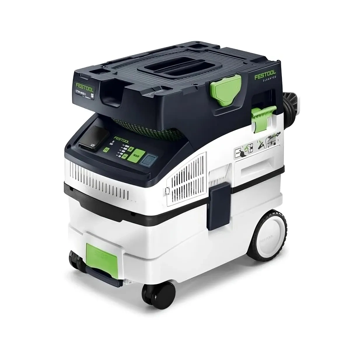 Odkurzacz CTM MIDI I Festool 578301 to wszechstronne urządzenie, które wyróżnia się wyjątkową wydajnością i niezawodnością, zarówno na placu budowy, jak i w profesjonalnym warsztacie. Jego kompaktowa budowa oraz wytrzymała konstrukcja sprawiają, że model ten jest łatwy w transporcie i zapewnia wygodę podczas pracy w trudnych warunkach. Dzięki wysokiej mocy ssania, która osiąga do 3700 l/min, odkurzacz skutecznie usuwa pyły drewniane, mineralne i inne niebezpieczne zanieczyszczenia, gwarantując bezpieczeństwo użytkownika oraz czystość w miejscu pracy. Dodatkowo zastosowanie filtra klasy M o skuteczności 99,9% zapewnia wysoką ochronę przed pyłami szkodliwymi dla zdrowia, spełniając przy tym wymagania europejskich norm. Odkurzacz wyposażony jest w innowacyjny moduł Bluetooth, który pozwala na automatyczne uruchamianie urządzenia w momencie pracy z bezprzewodowymi narzędziami, co znacząco zwiększa komfort pracy. Intuicyjny, dotykowy panel sterowania ułatwia szybkie ustawienie parametrów pracy, a funkcja automatycznego wyłączania przy zasysaniu cieczy chroni silnik przed uszkodzeniem. Dodatkowo gładka i antystatyczna rura ssąca zmniejsza ryzyko zatorów, a system T-LOC pozwala na łatwe podłączanie pojemników Systainer. Odkurzacz Festool CTM MIDI I jest także wygodny w użyciu dzięki takim udogodnieniom jak schowek na kabel czy uchwyt na wąż, które zapewniają porządek i łatwość organizacji pracy. Zestaw zawiera wszystkie niezbędne akcesoria, w tym filtr klasy M, worek SELFCLEAN oraz antystatyczną rurę ssącą.