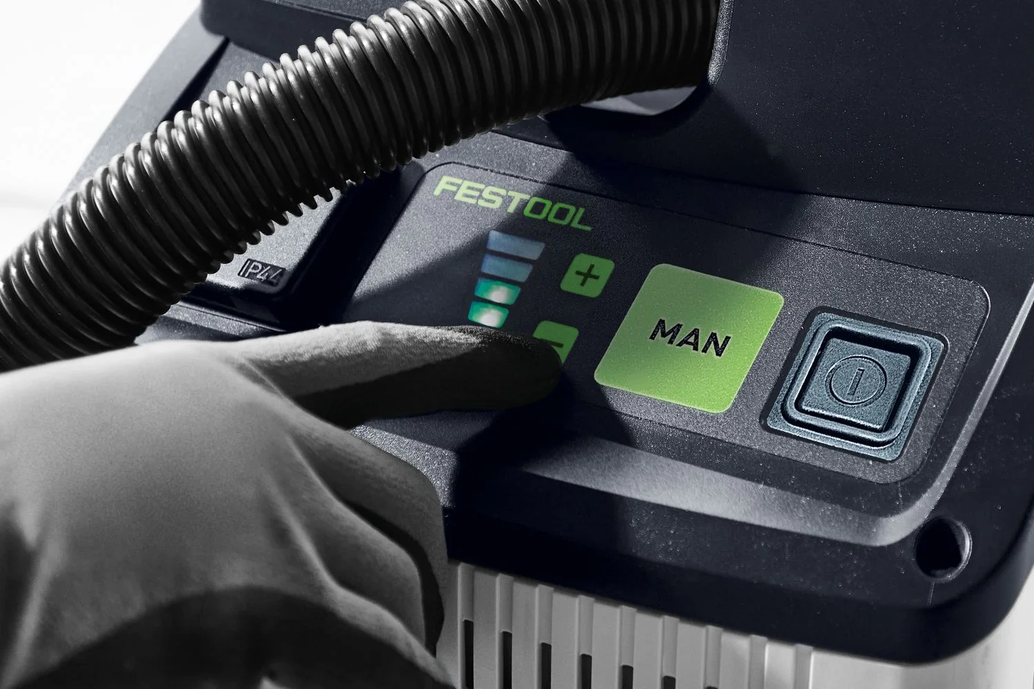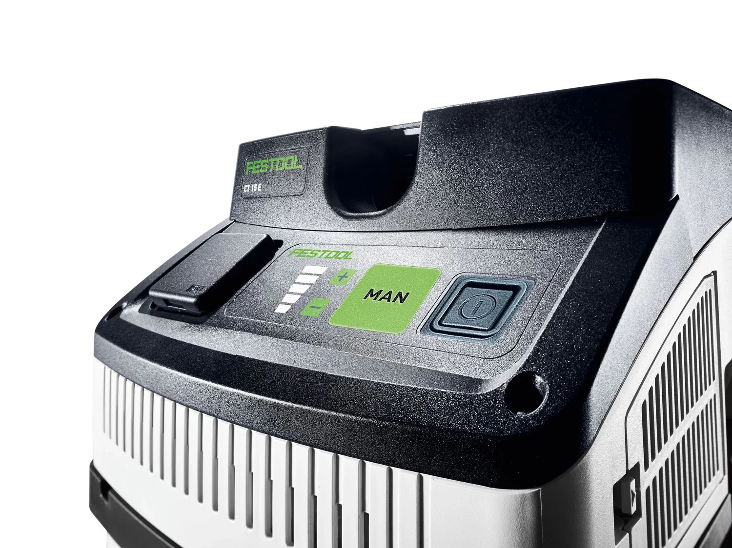 Festool CT 15 dzięki jego kompaktowym wymiarom, niskiej wadze oraz możliwości zamocowania węża ssącego za pomocą elastycznej gumki jest niezwykle praktyczny. Bezpieczeństwo użytkowania zapewnia wąż ssący z funkcją antystatyczną, który eliminuje gromadzenie się ładunków elektrostatycznych. Dodatkowym atutem jest intuicyjne sterowanie dotykowe. Brak pokręteł sprawia, że obsługa odkurzacza jest wyjątkowo prosta, nawet w rękawiczkach.