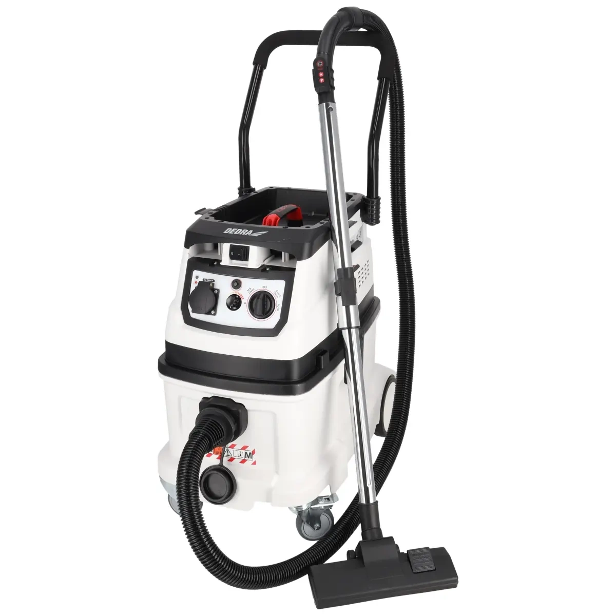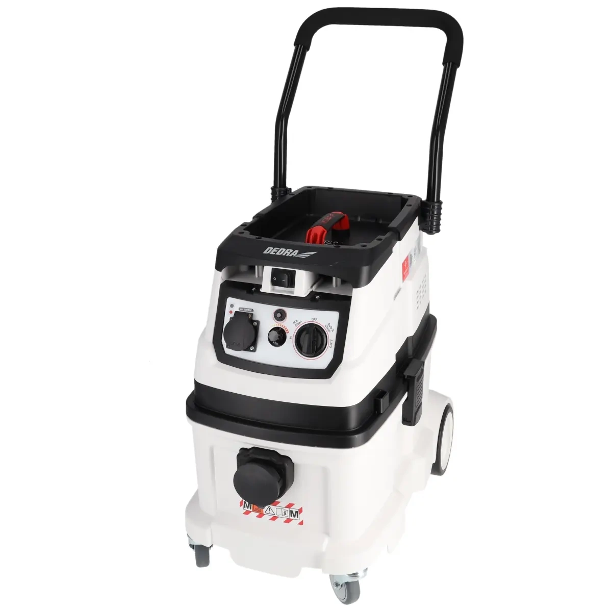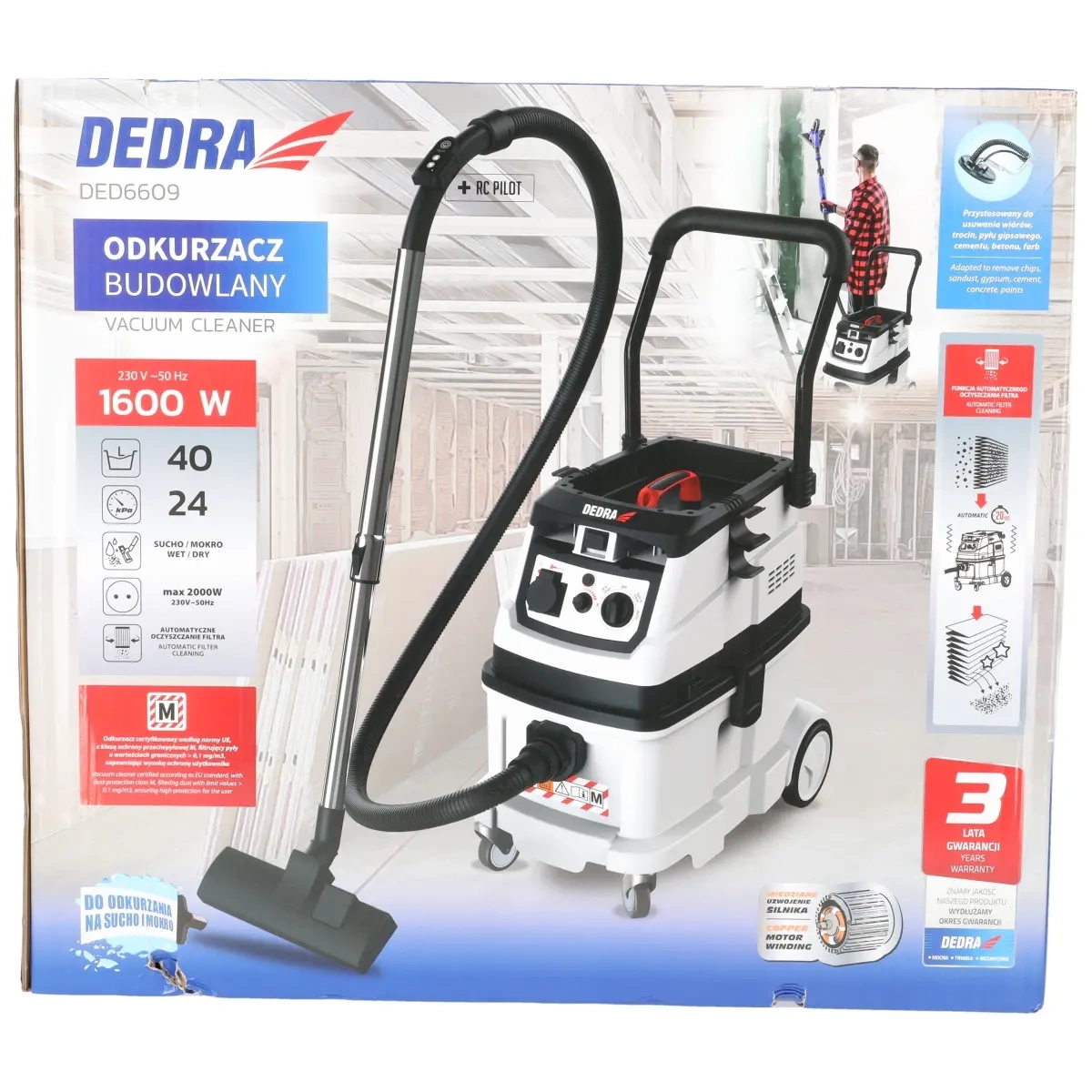 Silnik o mocy 1600 W zapewnia wysoką wydajność i trwałość, z kolei regulacja siły ssania umożliwia dostosowanie pracy urządzenia do aktualnych potrzeb. Odkurzacz DED6609 wyposażono także w gniazdo do podłączenia elektronarzędzi o mocy do 2000 W, co ułatwia synchronizację pracy urządzeń. Solidna konstrukcja, duże koła i ergonomiczna rączka ułatwiają transport i przemieszczanie odkurzacza na placu budowy.