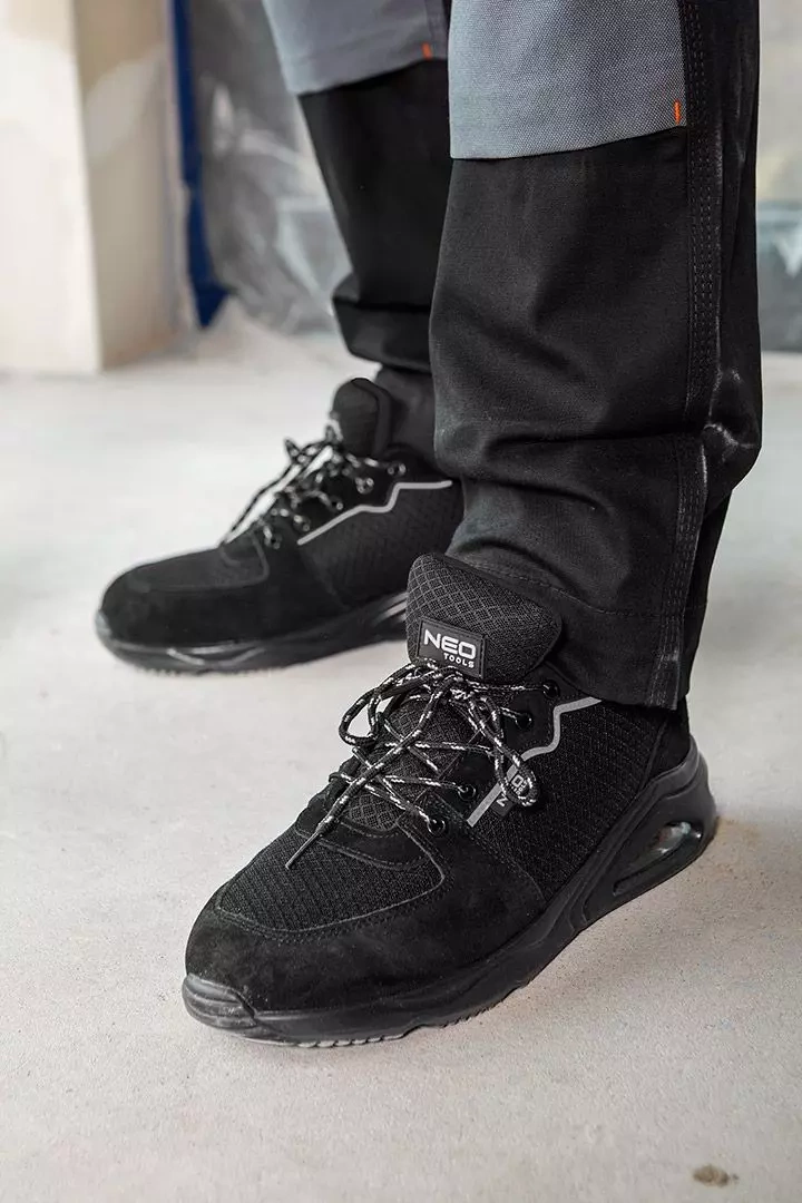 Półbuty robocze S1 SR Neo NEO Tools 82-171 w rozmiarze 39 to funkcjonalne i bezpieczne obuwie przeznaczone do pracy w wymagających warunkach. Model ten łączy solidność wykonania z wygodą użytkowania, oferując jednocześnie nowoczesny, sportowy design. Buty spełniają normy kategorii SR, co oznacza zwiększoną odporność na poślizg na powierzchniach ceramicznych pokrytych glicerolem. Dodatkowo stalowy podnosek zapewnia skuteczną ochronę przed uderzeniami o energii do 200 J, dzięki czemu idealnie sprawdzą się w środowiskach o podwyższonym ryzyku urazów stóp.
