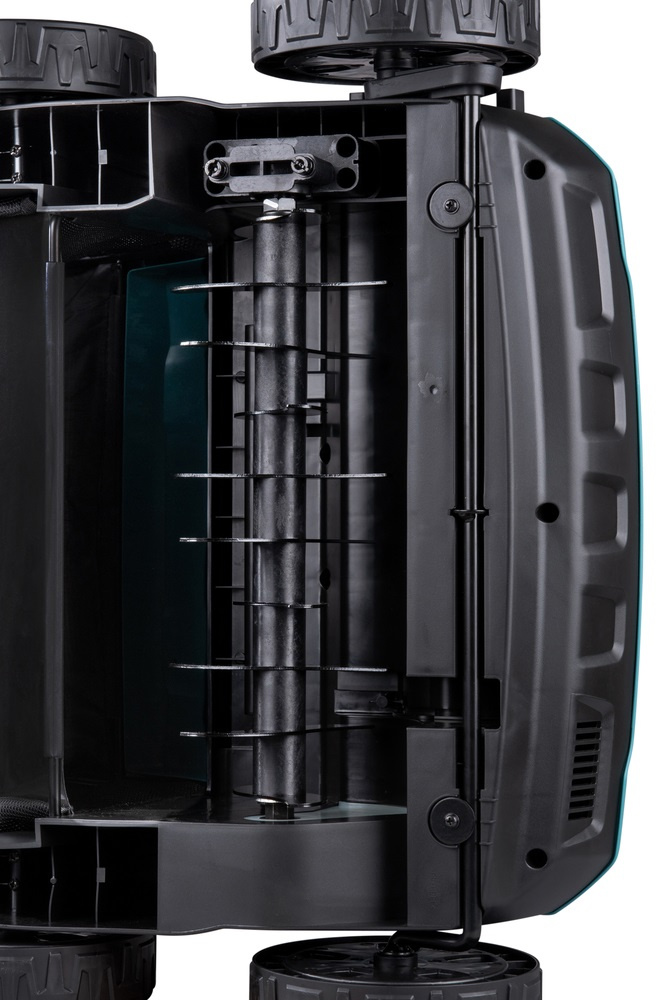 Wertykulator wyposażony jest w solidne koła o średnicy 160 mm, osadzone na łożyskach kulkowych, które zapewniają dobrą zwrotność i płynność prowadzenia nawet po nierównym terenie.