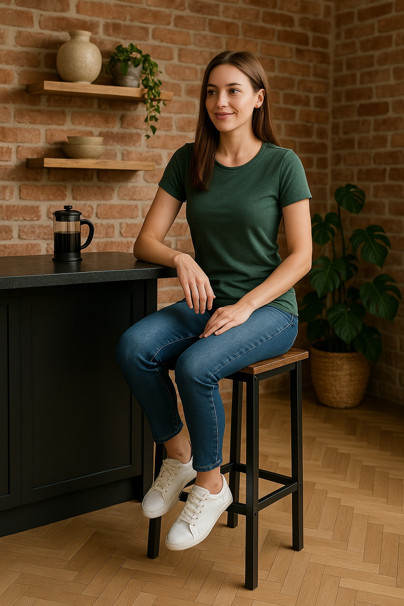 Stołek barowy Belivio PAX w kolorze Rustical Oak to idealne połączenie stylu industrialnego z funkcjonalnością, które doskonale odnajdzie się w nowoczesnych kuchniach, jadalniach czy wnętrzach typu loft. Wyróżnia się prostym, ale efektownym designem – prostokątne siedzisko w odcieniu dębu rustykalnego kontrastuje z czarną, stalową konstrukcją malowaną proszkowo, tworząc estetyczną i trwałą całość. Dzięki swojej wysokości 65 cm stołek świetnie sprawdzi się przy blatach o wysokości 100–105 cm, zapewniając komfort użytkowania. Stabilność konstrukcji i ergonomiczne wymiary (30 × 40 cm) gwarantują wygodę, a łatwość czyszczenia sprawia, że jest to praktyczny wybór do codziennego użytku. Samodzielny montaż zajmuje zaledwie kilka minut i nie wymaga dodatkowych narzędzi – wszystko, co potrzebne, znajduje się w zestawie. Belivio PAX to więcej niż tylko mebel – to stylowy akcent, który wniesie charakter i nowoczesny klimat do każdego wnętrza.