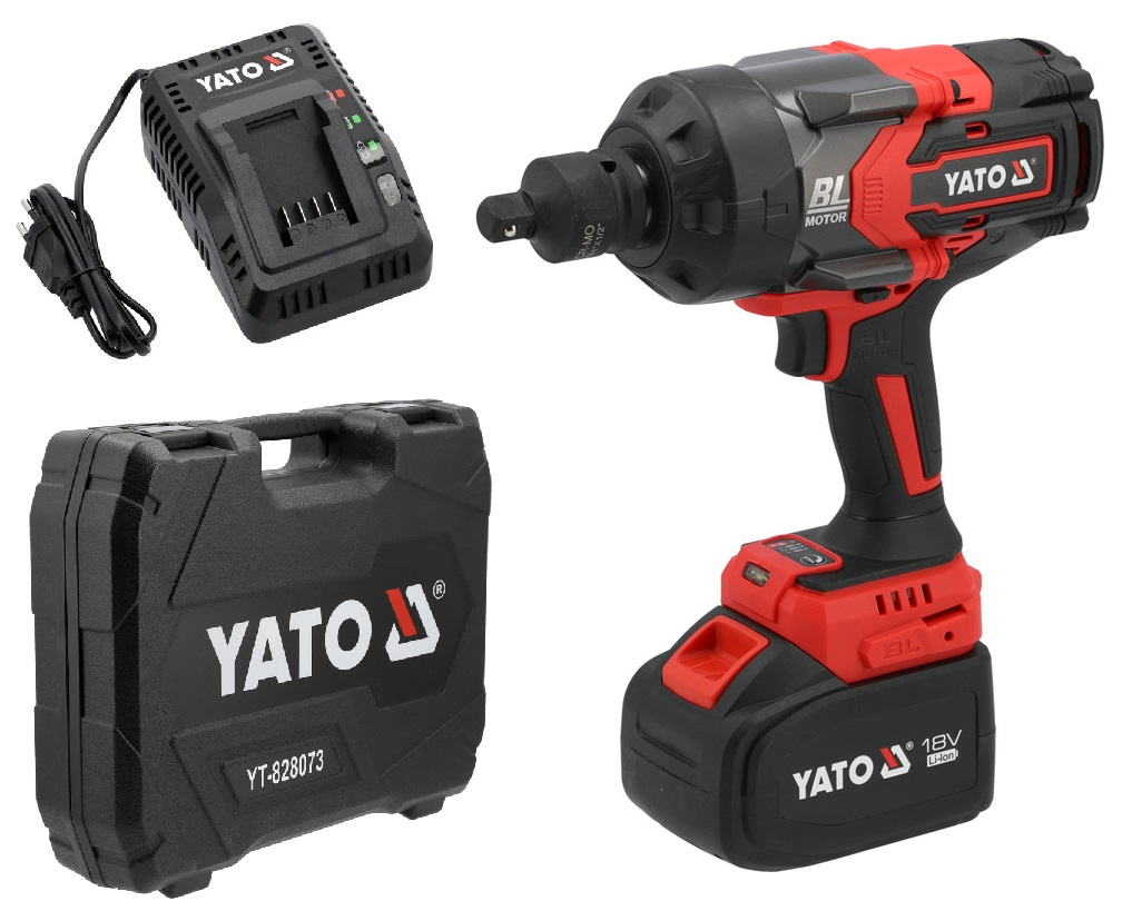 Urządzenie wyposażono w uchwyt narzędziowy 3/4", a w zestawie dodatkowo znajduje się adapter do bitów 3/4" → 1/2", co rozszerza jego uniwersalność. Klucz udarowy YT-828073 wyróżnia się solidną konstrukcją i ergonomiczną budową, umożliwiającą komfortowe użytkowanie nawet przy intensywnym obciążeniu. Wbudowane oświetlenie LED ułatwia pracę w słabo oświetlonych miejscach.