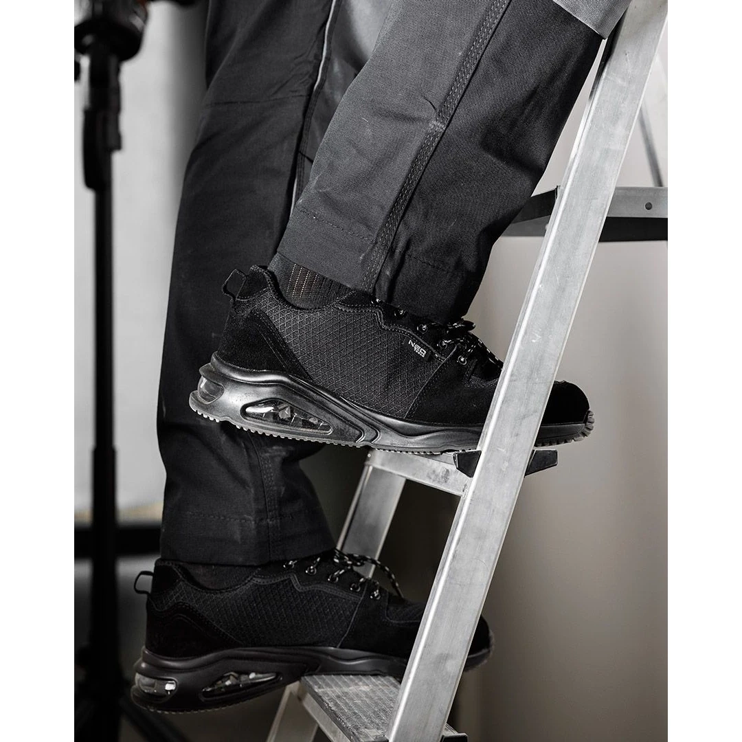 Podeszwa z lekkiego poliuretanu (PU) z poduszką powietrzną oraz piankowa wkładka Hi-Poly zapewniają amortyzację i wysoki komfort użytkowania nawet przy wielogodzinnym noszeniu. Buty cechują się także właściwościami antystatycznymi oraz zdolnością do absorpcji energii w części piętowej, co dodatkowo podnosi poziom ochrony. Certyfikat CE potwierdza zgodność z europejskimi normami, a uniwersalna czarna kolorystyka i atrakcyjny design sprawiają, że buty sprawdzą się nie tylko w pracy, ale również poza nią.