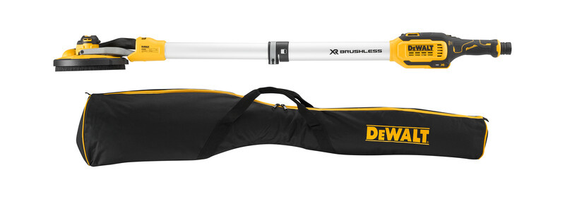 Urządzenie posiada teleskopowy uchwyt o długości od 1,25 do 1,6 m, który umożliwia szybkie dostosowanie długości narzędzia bez konieczności jego wyłączania. Przegubowa głowica zapewnia łatwy dostęp do trudno dostępnych miejsc, a boczne umiejscowienie węża odciągu pyłu poprawia widoczność pola pracy. System AirLock™ pozwala na szybkie i szczelne podłączenie szlifierki do odkurzaczy DeWalt, natomiast funkcja Wireless Tool Control umożliwia bezprzewodową synchronizację z kompatybilnymi odkurzaczami, jak np. model DCV586M, zapewniając automatyczne uruchamianie odsysania pyłu.