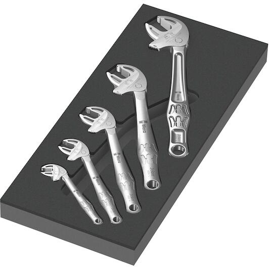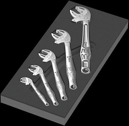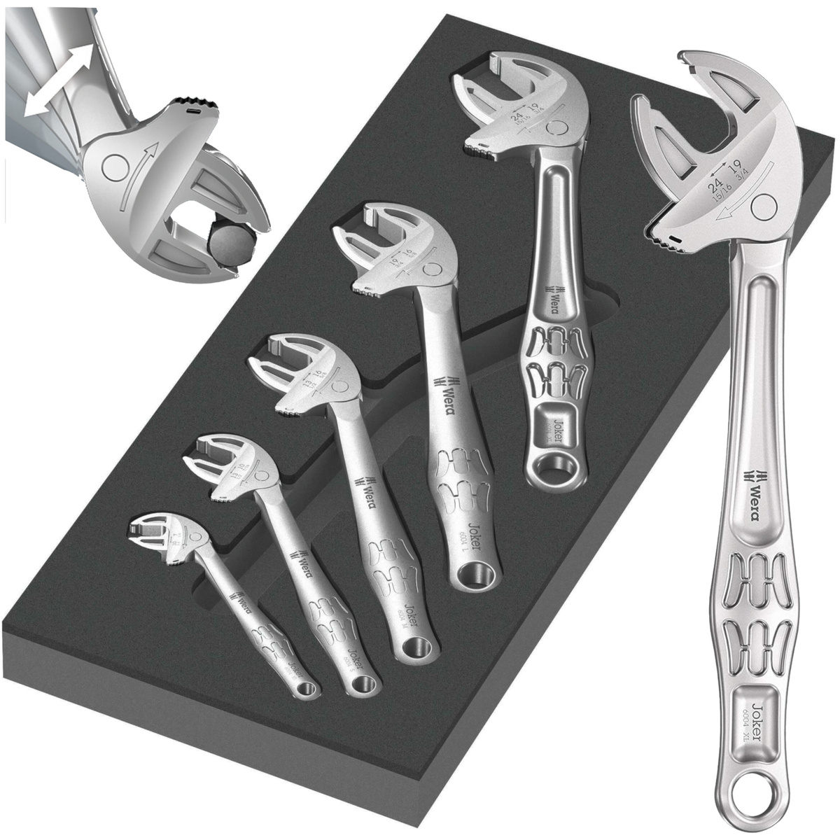 • Zestaw 5 kluczy samonastawnych Wera Joker 6004 – dopasowanie do różnych rozmiarów bez potrzeby zmiany narzędzia,
