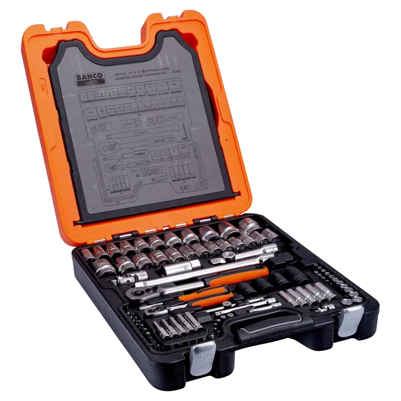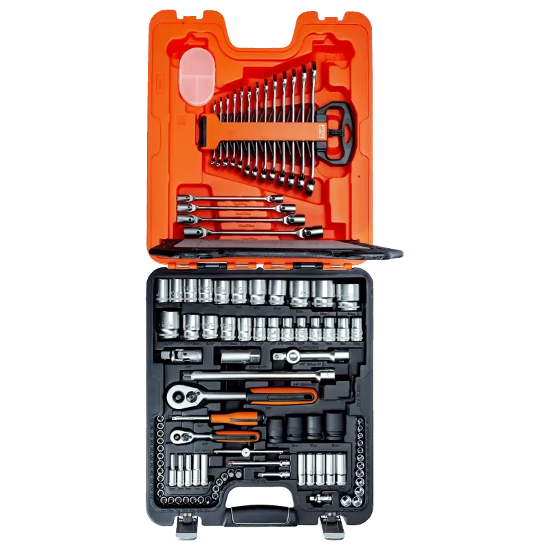 Zestaw narzędzi Bahco S106 106 el. to kompletny zestaw narzędzi mechanicznych, który łączy nasadki w standardach 1/4" i 1/2" z szerokim zakresem końcówek oraz kluczy płasko-oczkowych. Dzięki swojej uniwersalności i solidnemu wykonaniu ze stali stopowej, zestaw ten doskonale sprawdzi się zarówno w profesjonalnym warsztacie, jak i w domowym garażu. Elementy zestawu zostały umieszczone w trwałej walizce z wysokiej jakości tworzywa HDPE, a grzechotki o 60-zębowym mechanizmie z szybkim mocowaniem zapewniają płynność pracy i precyzyjne działanie nawet w trudno dostępnych miejscach.