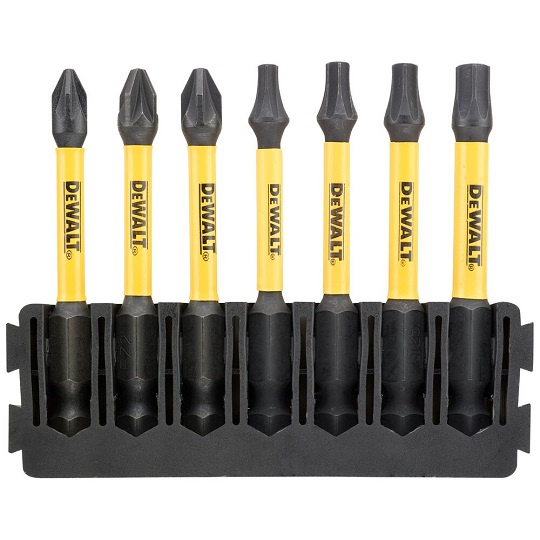 Zestaw bitów udarowych DeWalt DT70823-QZ to praktyczny komplet 7 końcówek 1/4" o długości 57 mm, zaprojektowany z myślą o pracy z zakrętarkami udarowymi oraz – po zastosowaniu odpowiednich przejściówek – także z kluczami udarowymi. W zestawie znajdują się końcówki typu Pozidriv i Torx, co czyni go uniwersalnym rozwiązaniem do szerokiego zakresu zastosowań montażowych.