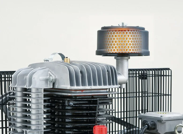Model 8115200NUA został dodatkowo wyposażony w zawór spustowy z przedłużeniem, co znacznie ułatwia konserwację. Duży filtr wlotowy oraz stalowa osłona elementów ruchomych poprawiają bezpieczeństwo pracy i obniżają poziom hałasu. To solidne, funkcjonalne rozwiązanie dla warsztatów i użytkowników profesjonalnych.