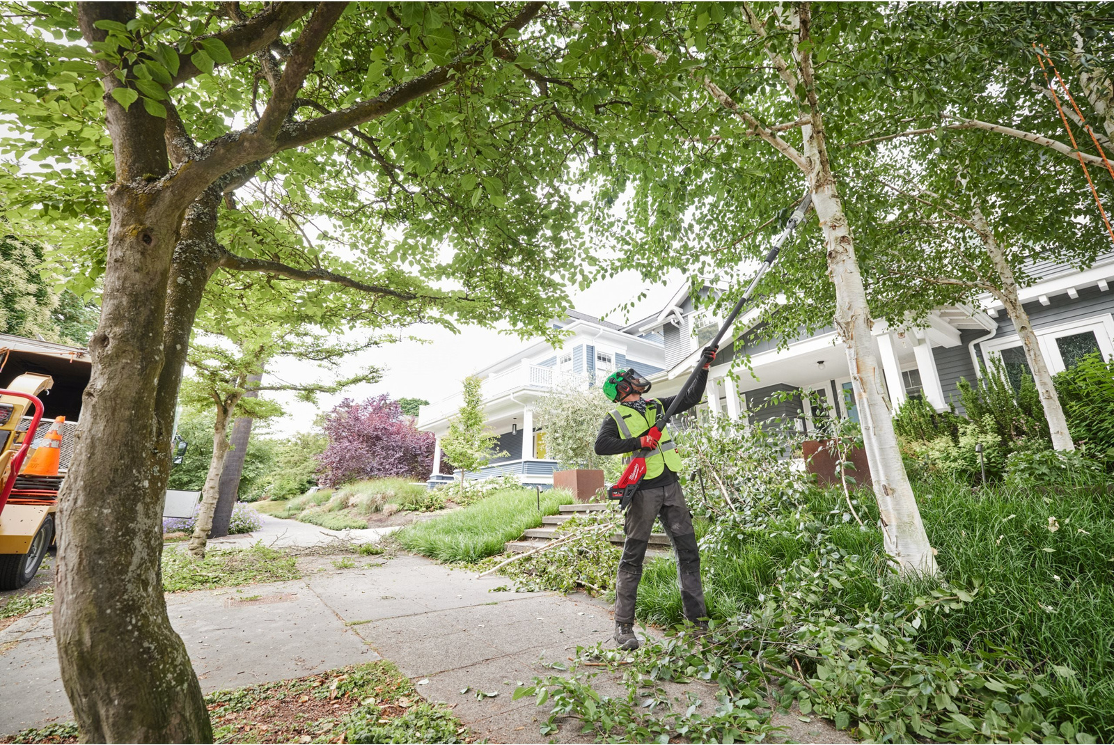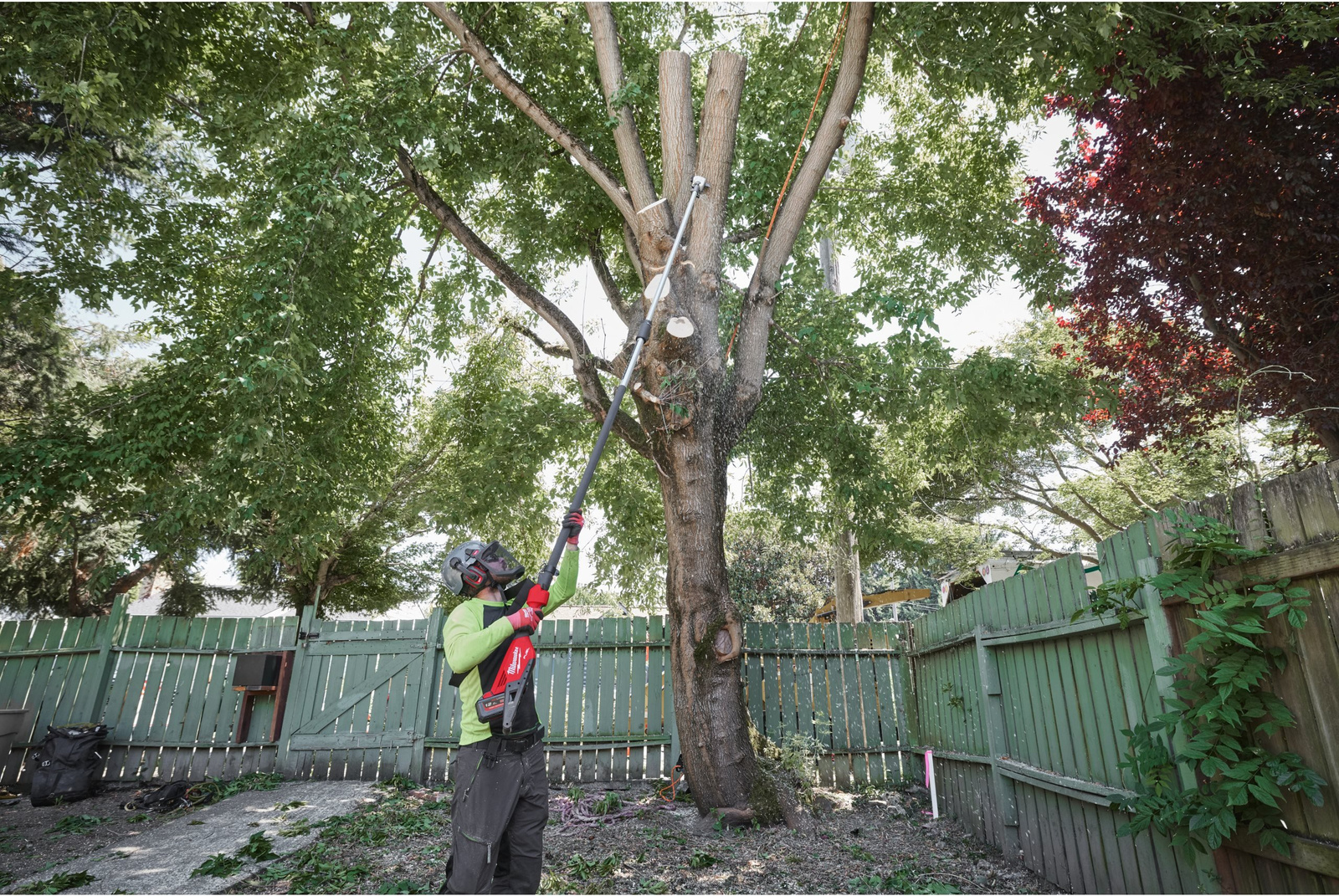 Dzięki teleskopowemu trzonkowi z możliwością regulacji długości w zakresie 270–400 cm, użytkownik zyskuje duży zasięg pracy bez konieczności stosowania drabin. Stabilna konstrukcja i wyważenie urządzenia gwarantują wygodę oraz bezpieczeństwo podczas pracy na wysokości. Model ten jest w stanie wykonać do 70 cięć drewna o przekroju 150 x 150 mm na jednym ładowaniu dołączonego akumulatora 12,0 Ah z serii HIGH OUTPUT™.