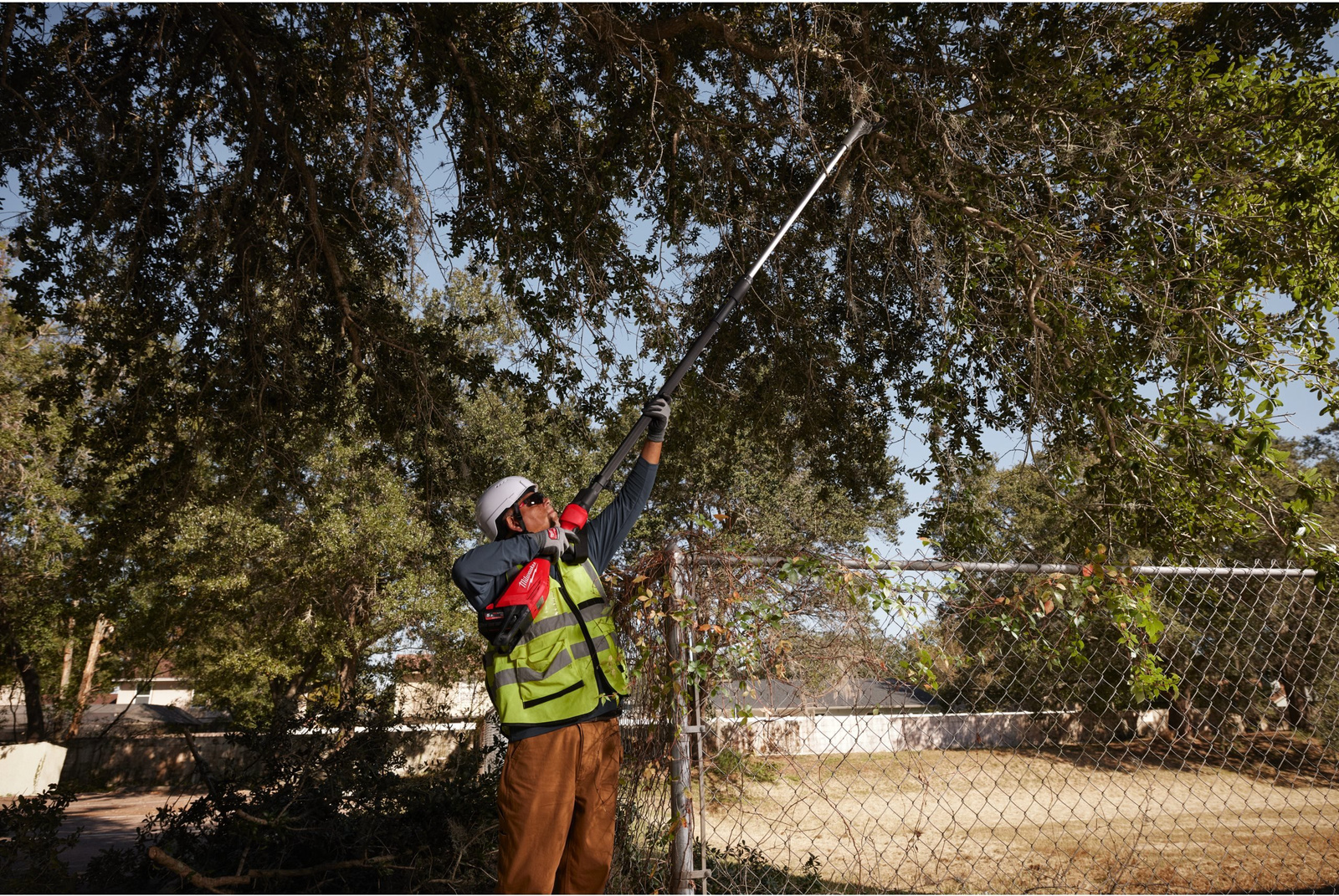 Urządzenie wyposażone jest także w wysuwany hak do gałęzi, który ułatwia ściąganie zablokowanych fragmentów, oraz w zewnętrzną obudowę wysięgnika, poprawiającą kontrolę i komfort pracy. System M18™ zapewnia kompatybilność ze wszystkimi akumulatorami MILWAUKEE® z tej serii.