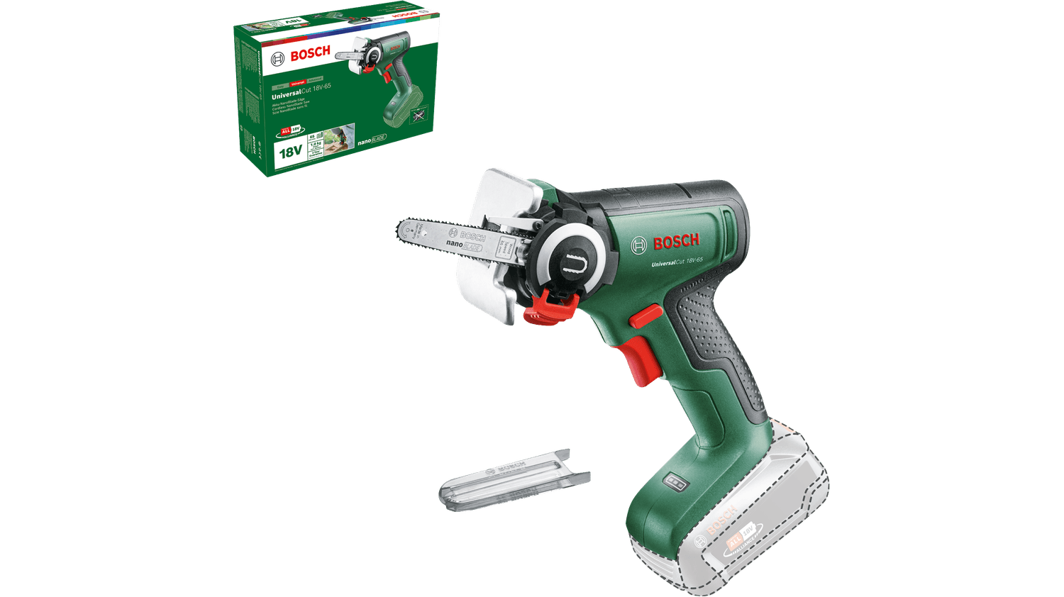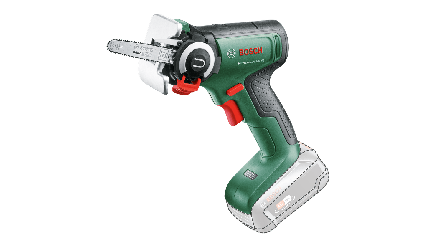 Mini pilarka Bosch Universal Cut 18V-65 06033D5200 to wszechstronne narzędzie przeznaczone do cięcia drewna, tworzyw sztucznych i gałęzi ogrodowych. Dzięki innowacyjnej technologii NanoBlade, piła umożliwia precyzyjne i pozbawione drgań cięcia bez konieczności smarowania, ostrzenia czy napinania brzeszczotu. Model UniversalCut 18V-65 zapewnia wyjątkowy komfort użytkowania dzięki zoptymalizowanej ergonomii – umożliwia pracę oburącz oraz intuicyjną kontrolę prędkości za pomocą spustowego włącznika.