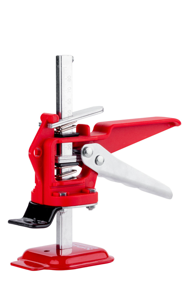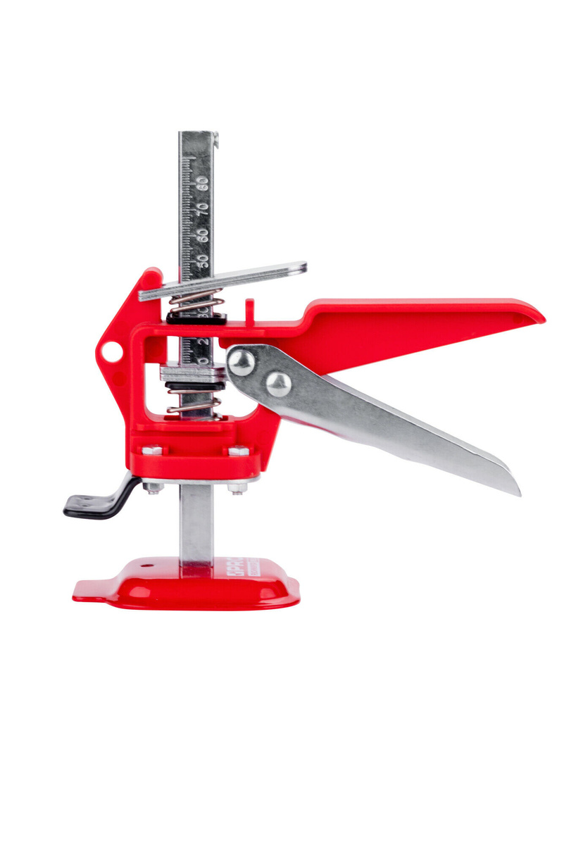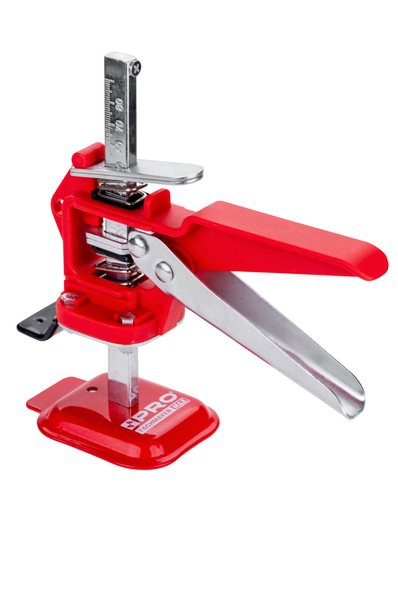 Glazurniczy podnośnik ręczny PRO-AG020 to funkcjonalne narzędzie przeznaczone do precyzyjnego ustawiania płytek ceramicznych i wielkoformatowych płyt na ścianach. Dzięki uniwersalnej konstrukcji sprawdzi się również podczas montażu elementów meblowych, okien, drzwi czy płyt gipsowo-kartonowych. Mechanizm unoszący pokryty gumą chroni powierzchnię materiału przed uszkodzeniami, co zwiększa bezpieczeństwo pracy. Wyposażony w czytelną podziałkę (mm/cm) i płynną regulację wysokości do 80 mm, zapewnia dokładność i łatwość ustawienia. Dodatkowo uchwyt do przechowywania pozwala na wygodne zawieszenie narzędzia po zakończeniu pracy. Solidna konstrukcja umożliwia pracę z elementami o masie do 50 kg.