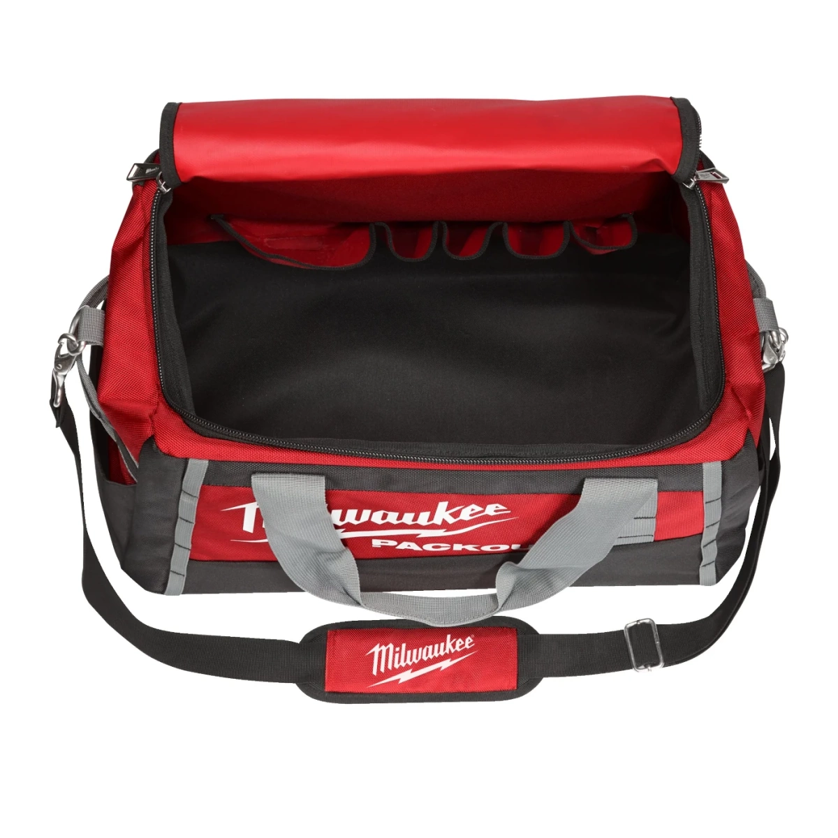 Torba Milwaukee Packout™ 4932471067 została również zaprojektowana z myślą o wygodzie użytkownika. Zastosowano międzzy innymi wyściełany pasek na ramię, który umożliwia komfortowe noszenie cięższego wyposażenia, minimalizując nacisk podczas dłuższego użytkowania oraz solidne uchwyty boczne.
