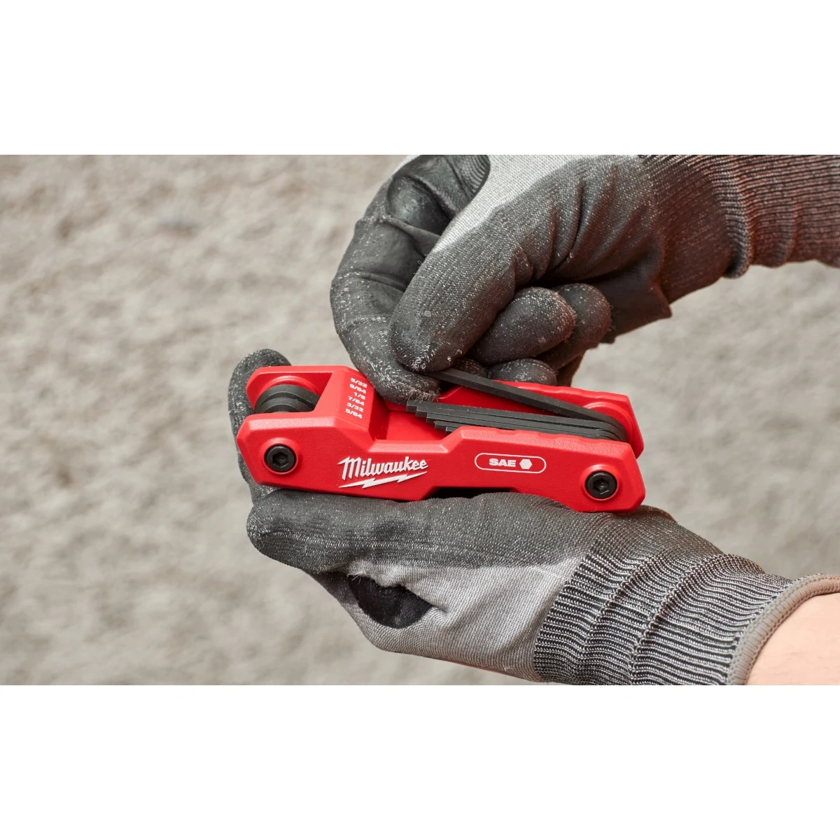 Zestaw składanych kluczy imbusowych Milwaukee 4932493614 to praktyczne i kompaktowe narzędzie zaprojektowane z myślą o wygodzie użytkownika w warunkach serwisowych, warsztatowych oraz podczas prac mobilnych. Dzięki składanej konstrukcji wszystkie klucze są zintegrowane w jednej obudowie, co eliminuje problem zgubionych elementów i znacząco ułatwia transport – zestaw bez trudu zmieści się w kieszeni spodni roboczych, torbie narzędziowej czy skrzynce. Solidna, metalowa obudowa zapewnia trwałość nawet przy intensywnym użytkowaniu, a ergonomiczny kształt gwarantuje pewny chwyt i komfort pracy. Wyraźne oznaczenia rozmiarów pozwalają na szybką identyfikację odpowiedniego klucza, co ma szczególne znaczenie podczas pracy w pośpiechu lub w ograniczonej przestrzeni. Zestaw świetnie sprawdzi się przy serwisowaniu rowerów, naprawie sprzętu elektronicznego, montażu mebli oraz w wielu innych codziennych zastosowaniach technicznych.