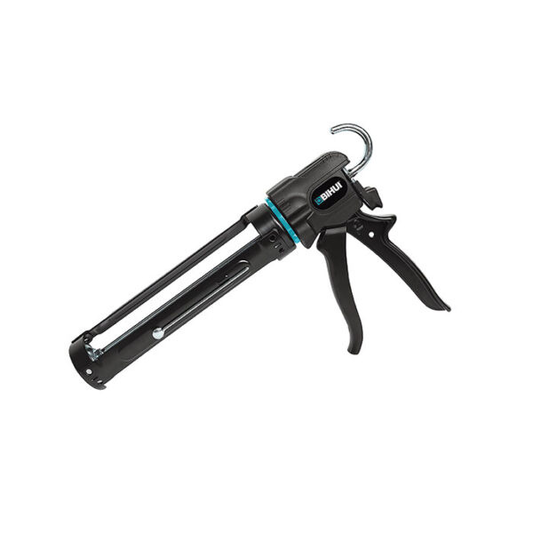 Pistolet do silikonu Bihui TCG310 to solidny wyciskacz do mas uszczelniających, przystosowany do precyzyjnego aplikowania jednoskładnikowych materiałów, także tych o wysokiej lepkości. Dzięki przełożeniu 26:1 i tłokowi o skoku 4 mm, urządzenie generuje siłę wycisku do 400 kg (3,9 kN), co umożliwia sprawną i kontrolowaną aplikację nawet w wymagających warunkach.