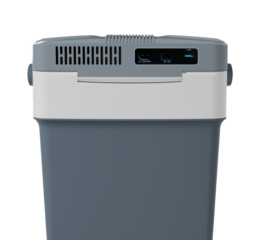 Produkt posiada panel sterowania z wyświetlaczem temperatury oraz port USB, który pozwala na ładowanie urządzeń mobilnych w terenie. Przemyślana konstrukcja obejmuje między innymi wygodny uchwyt do przenoszenia, blokadę pokrywy zabezpieczającą przed przypadkowym otwarciem oraz przestronną komorę z wyjmowaną kratką, która ułatwia organizację przechowywanej żywności. Całość zamknięta jest w solidnej obudowie z tworzywa sztucznego i izolowana pianką poliuretanową, co zapewnia dłuższe utrzymanie temperatury.