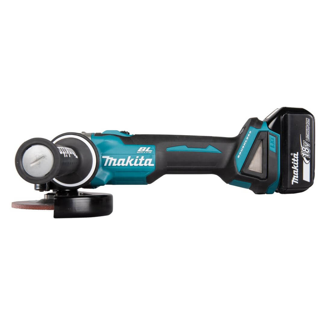 Makita DGA504Z ma bezszczotkowy silnik prądu stałego, który nie tylko wydłuża żywotność urządzenia, ale również zwiększa efektywność energetyczną. Brak szczotek oznacza mniejsze zużycie podzespołów, mniejszy poziom hałasu oraz bardziej stabilne działanie w wymagających warunkach. Urządzenie zostało wyposażone w trzystopniowy wskaźnik LED, który informuje użytkownika o stanie akumulatora oraz ostrzega przed przegrzaniem lub przeciążeniem narzędzia.