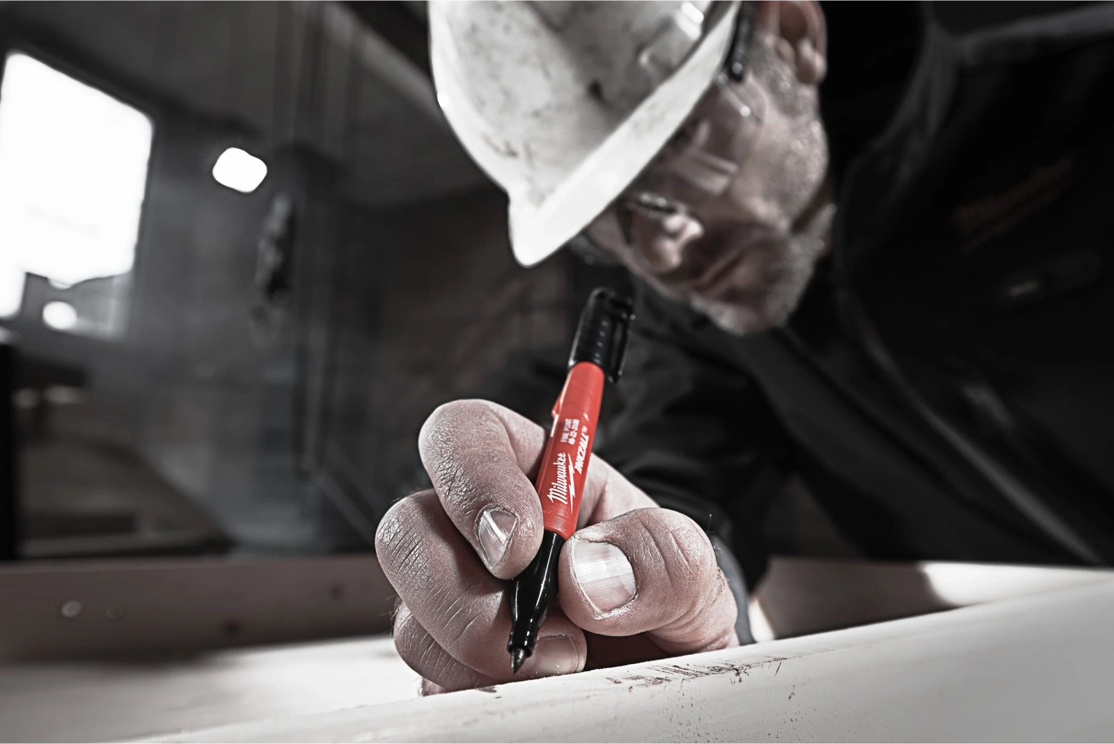 Marker Milwaukee INKZALL 48223100 to profesjonalne akcesorium przeznaczone do intensywnego użytkowania na wymagających powierzchniach budowlanych i przemysłowych. Wyposażony w wyjątkowo trwałą końcówkę, która nie deformuje się ani nie cofa pod naciskiem, sprawdza się nawet na chropowatych materiałach, takich jak beton czy płyty OSB. Marker został zaprojektowany z myślą o maksymalnej wydajności - pisze nawet po 72 godzinach od zdjęcia nasadki, co czyni go niezawodnym w trudnych warunkach pracy.