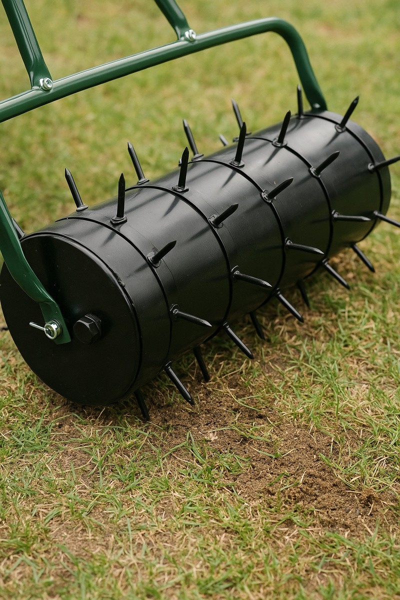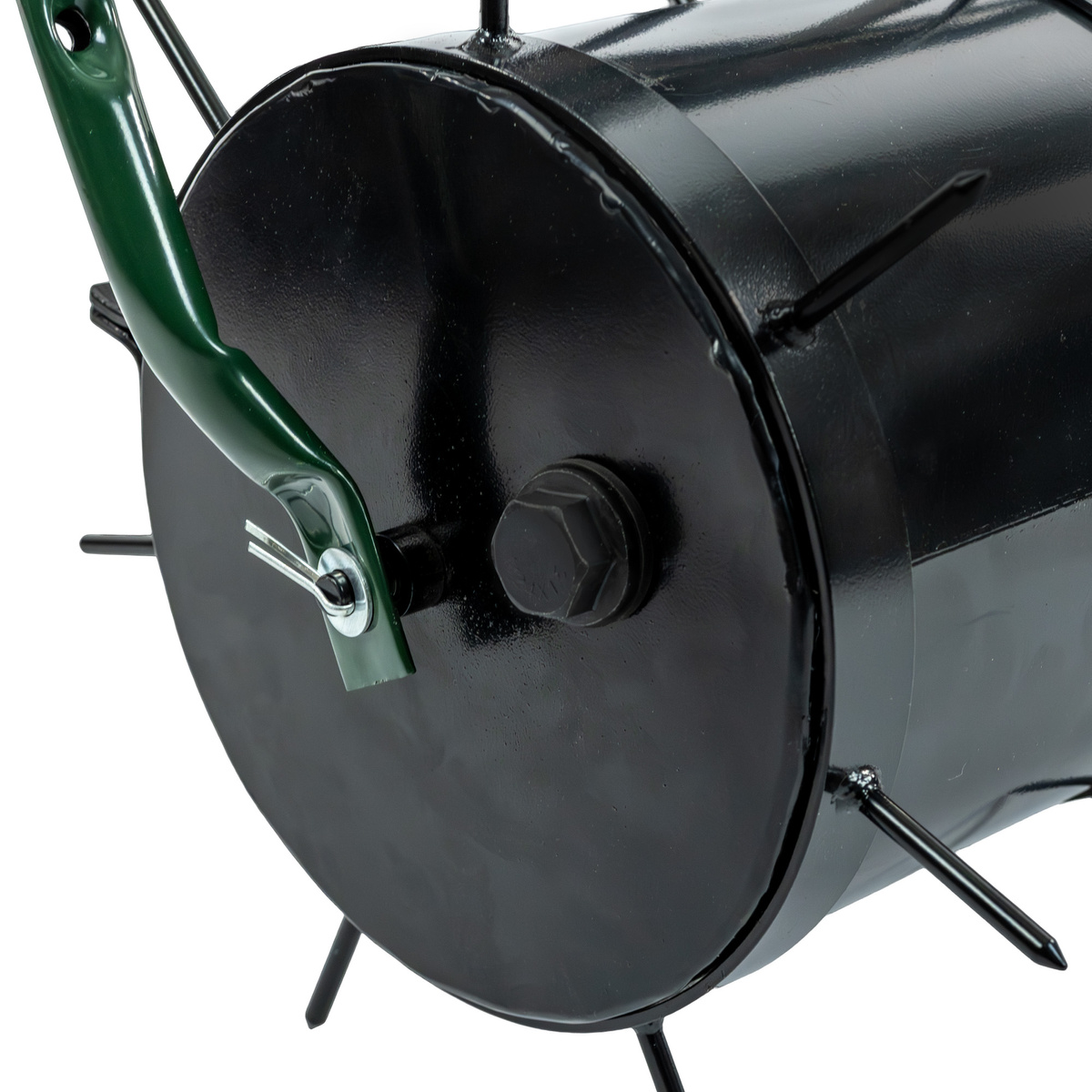 Po założeniu obręczy z kolcami walec zamienia się w wydajny aerator. Stalowe kolce o długości 6 cm wnikają w darń, poprawiając cyrkulację powietrza, dopływ wody oraz wchłanianie składników odżywczych przez korzenie trawy. Regularna aeracja zwiększa odporność trawnika na przesuszenie i choroby oraz wspiera jego bujny wzrost.